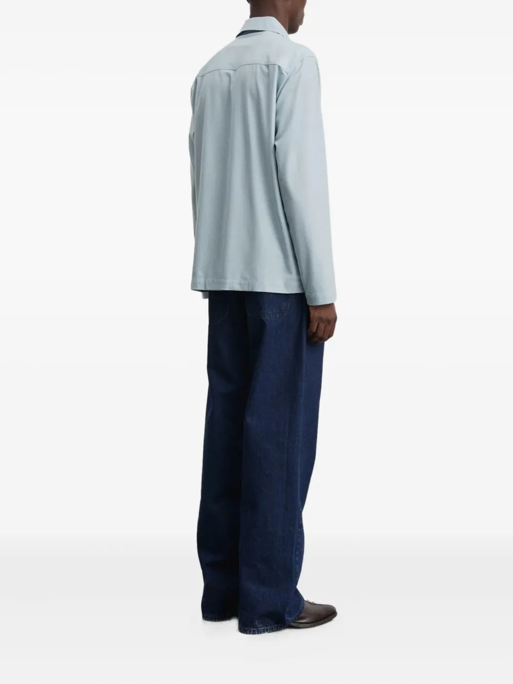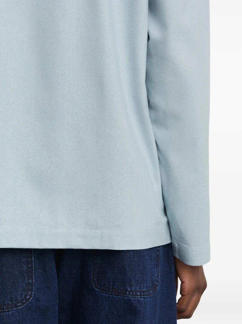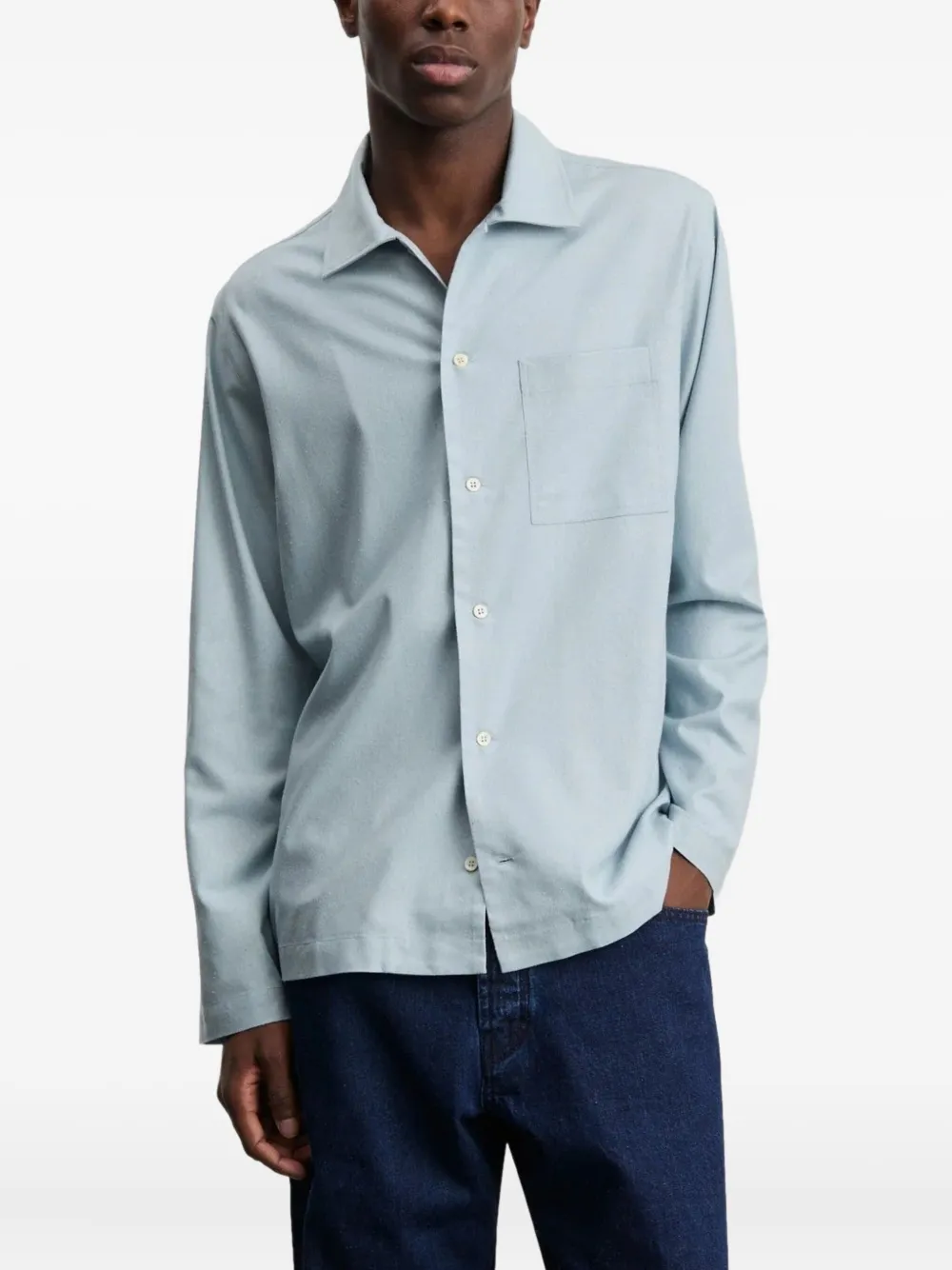 Небесно-голубой, нагрудный накладной карман, классический воротник, застежка на пуговицы, длинные рукава