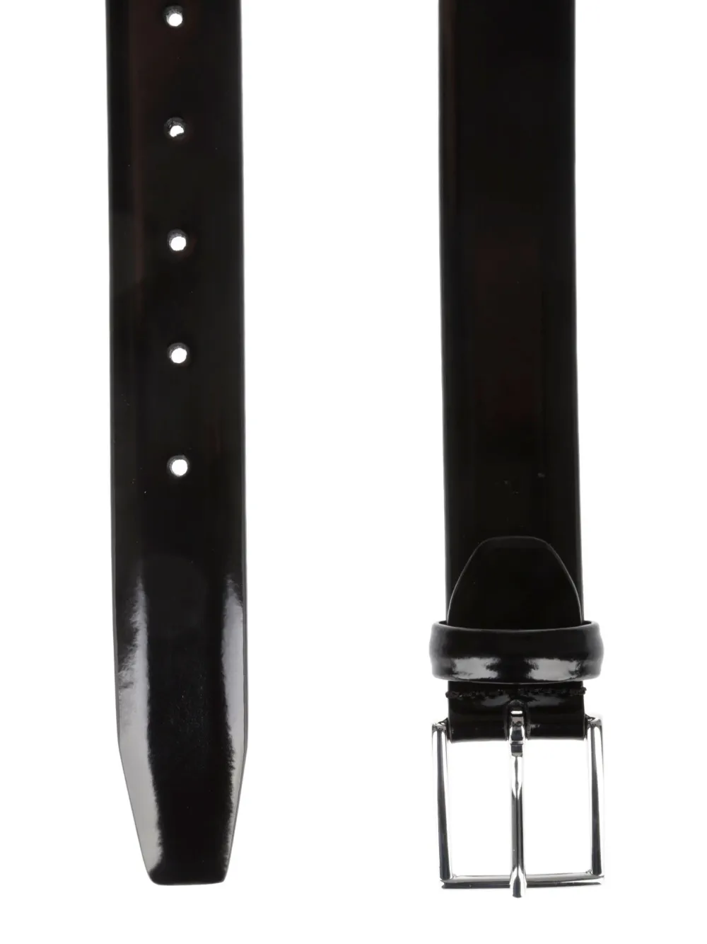 Черный ремень из гладкой кожи с квадратной пряжкой, пятью отверстиями, зауженным концом и полированной отделкой