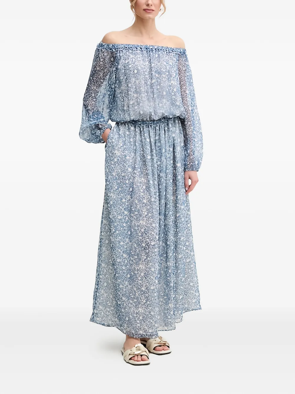 Платье макси с открытыми плечами и цветочным принтом Weekend Max Mara, синий