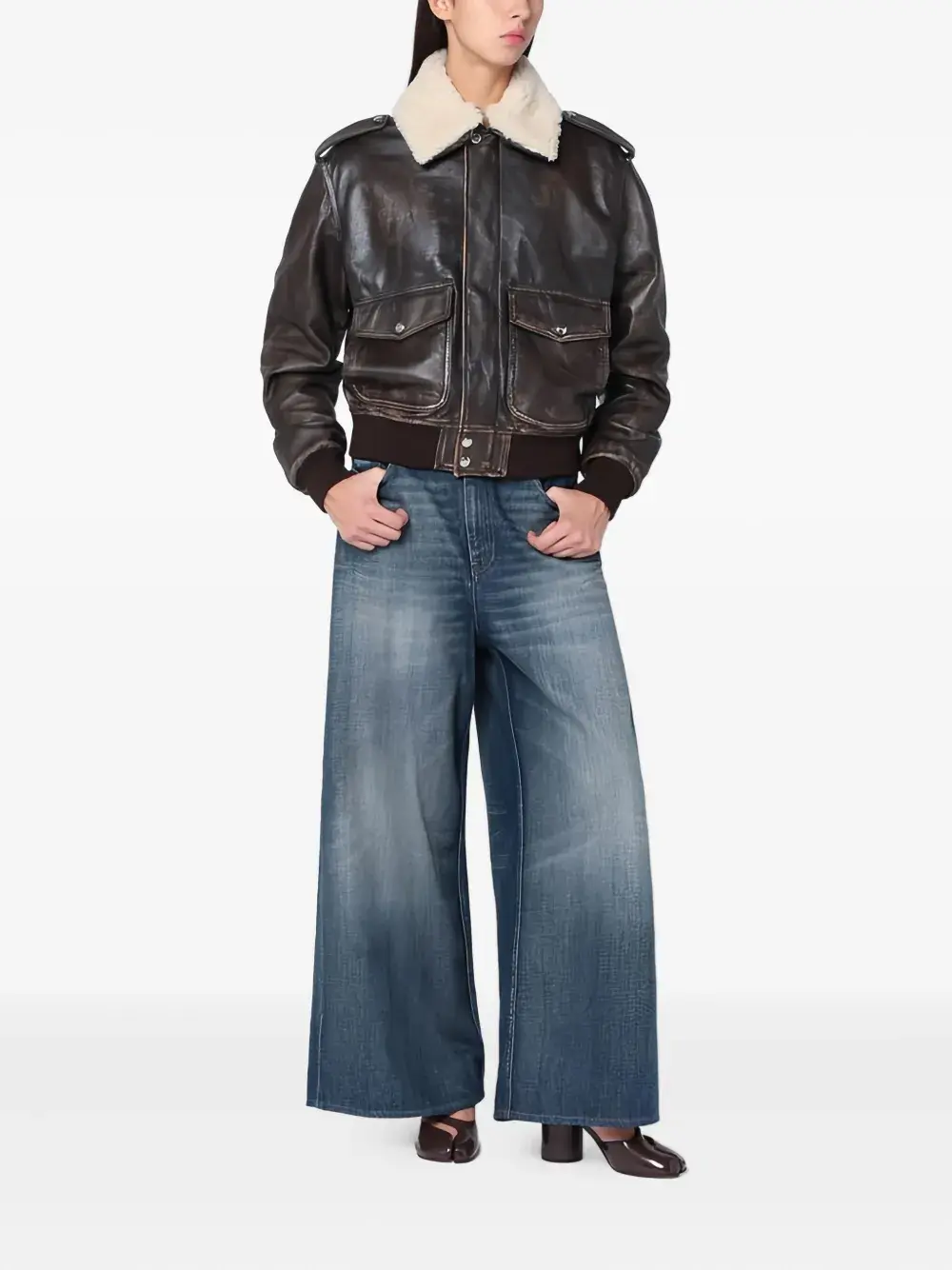 Кожаная бомбер-куртка Halfboy, черный