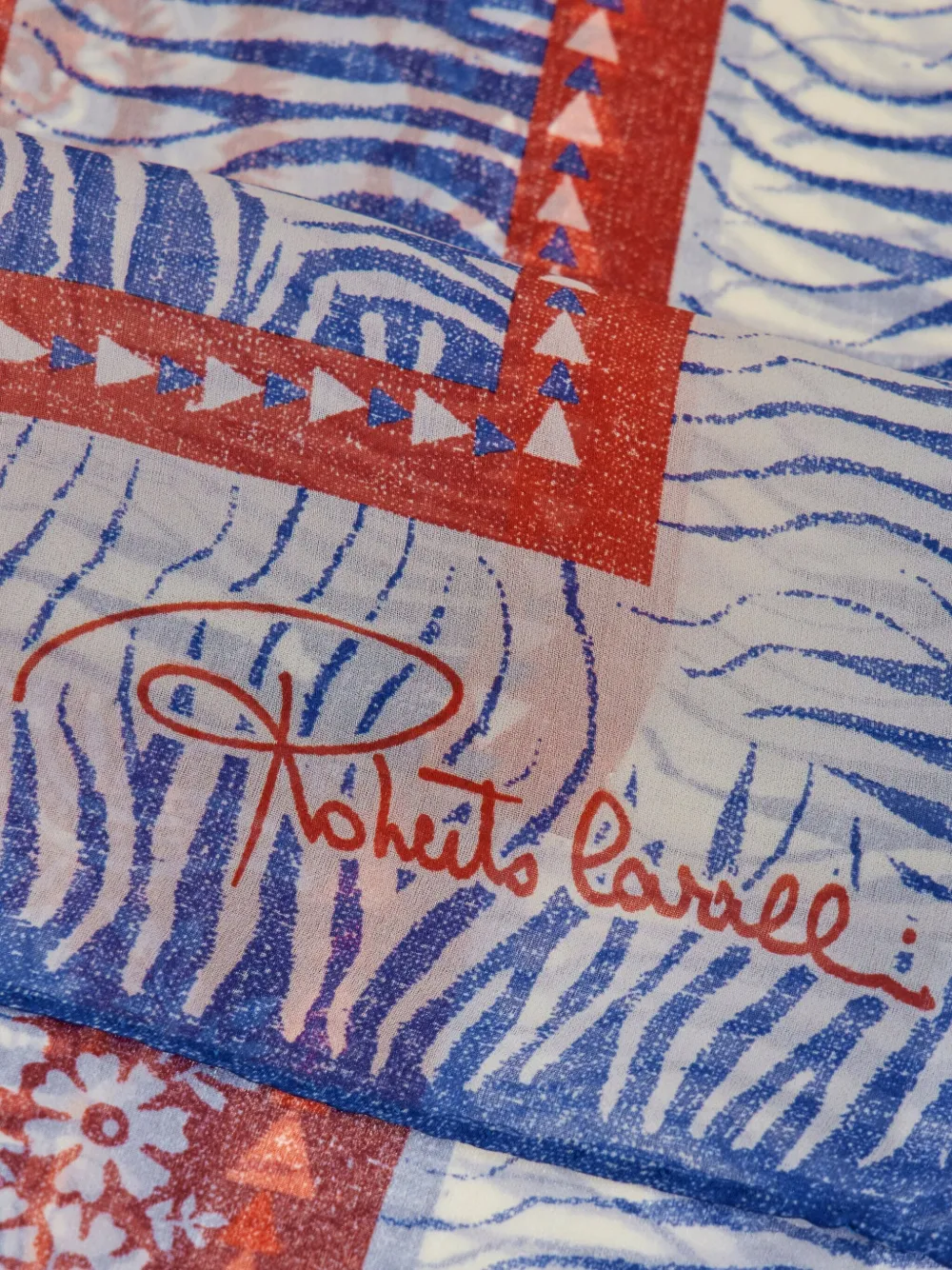 Шелковый платок с зебровым узором Roberto Cavalli, синий