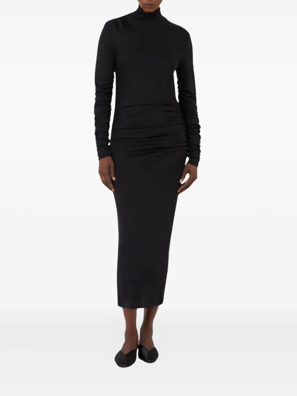 Черная водолазка с длинными рукавами и драпировкой