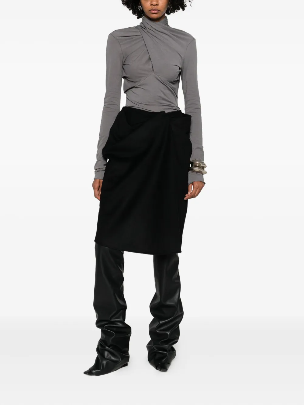 Черная модель с драпировкой, скрытая застежка-молния