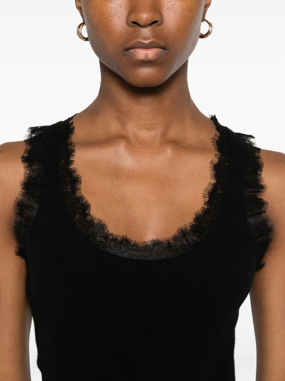Черный трикотажный топ без рукавов с кружевной отделкой