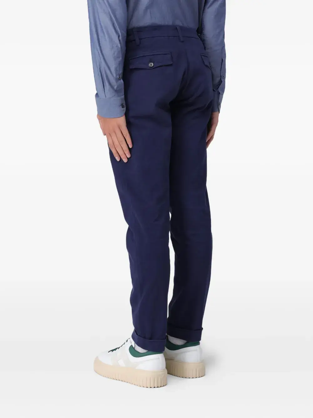 Синие брюки с застежкой на пуговицы и шлевками для ремня