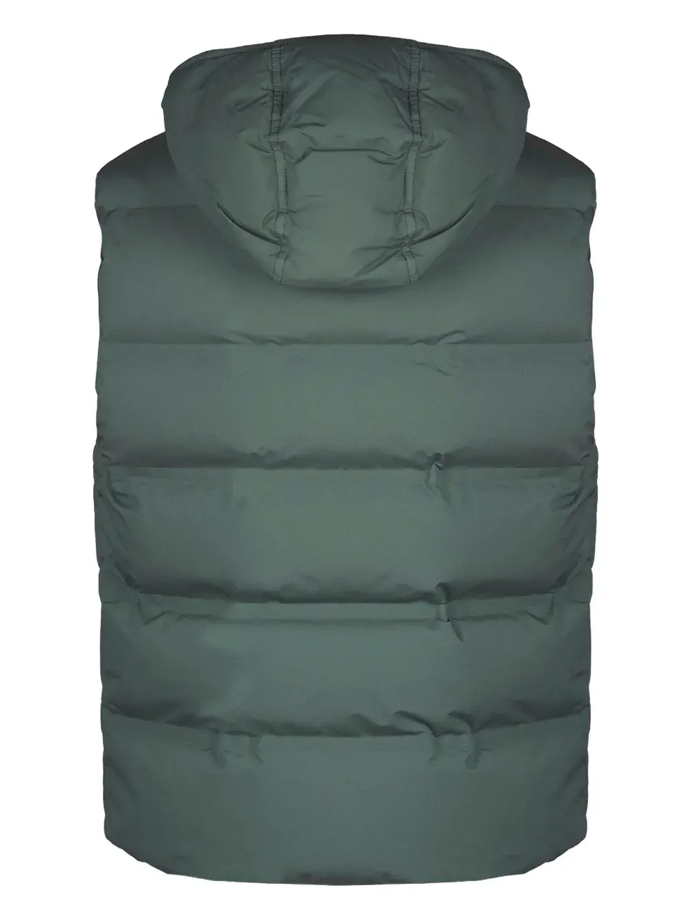 Зеленая стеганая жилетка с капюшоном и передними карманами