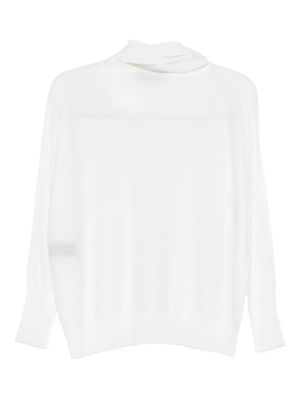 Белый топ с длинными рукавами, высоким воротом и завязками