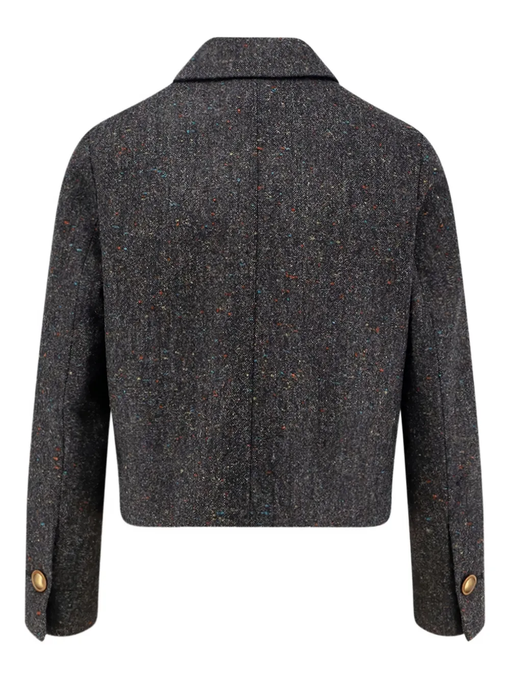 Серый, застежка на пуговицы, накладные карманы спереди, длинные рукава