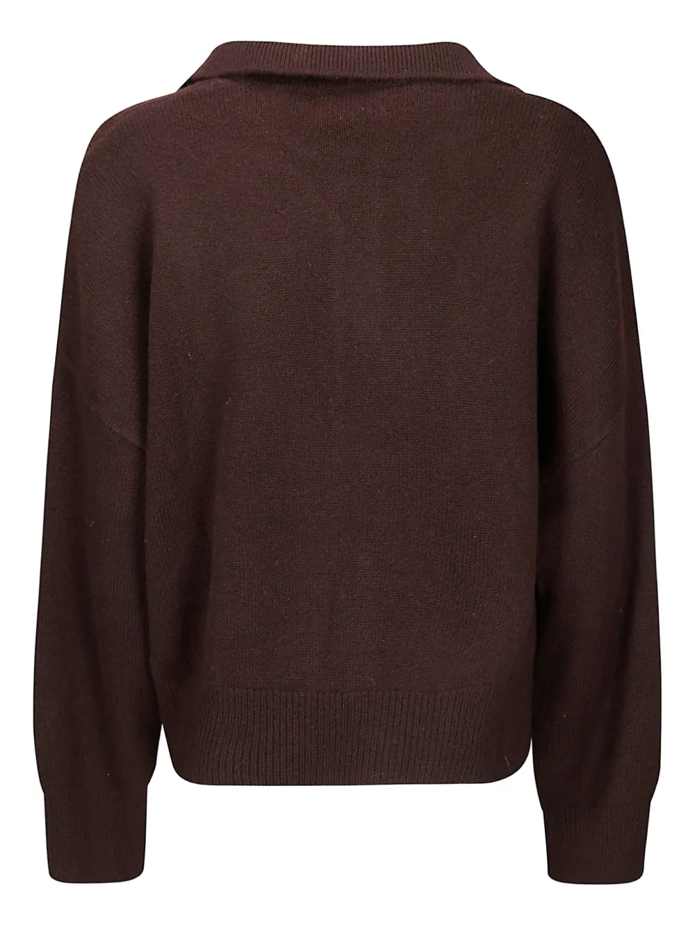 Коричневый пуловер с воротником поло, V-образным вырезом и длинными рукавами