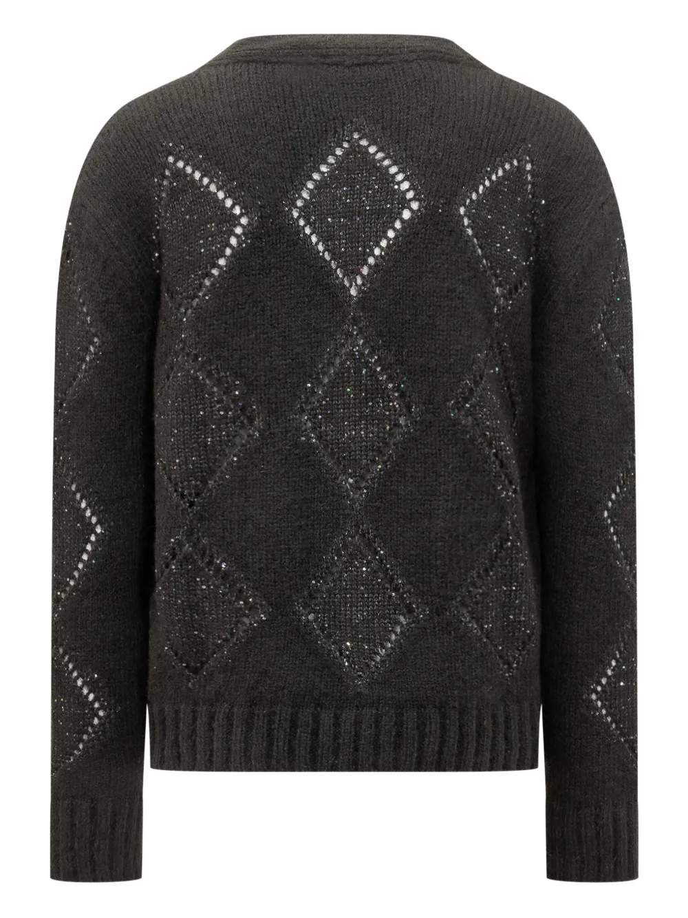 Черная застежка на пуговицы, V-образный вырез, открытая вязка, ребристый край