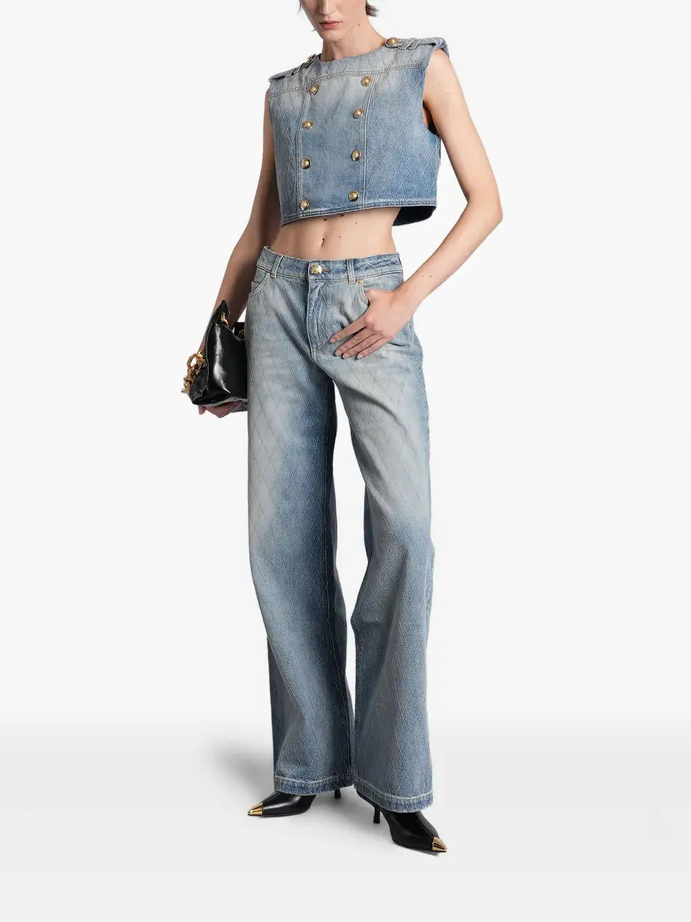 Стеганый топ на пуговицах Balmain, синий 110 818₽