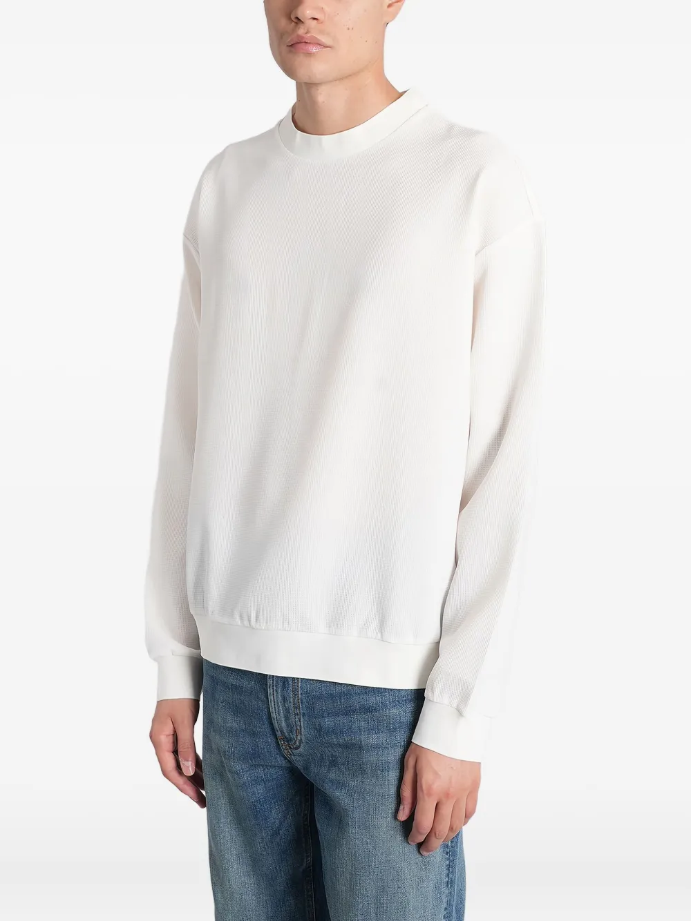 Белый свитшот с круглым вырезом, длинными рукавами, ребристым низом и манжетами