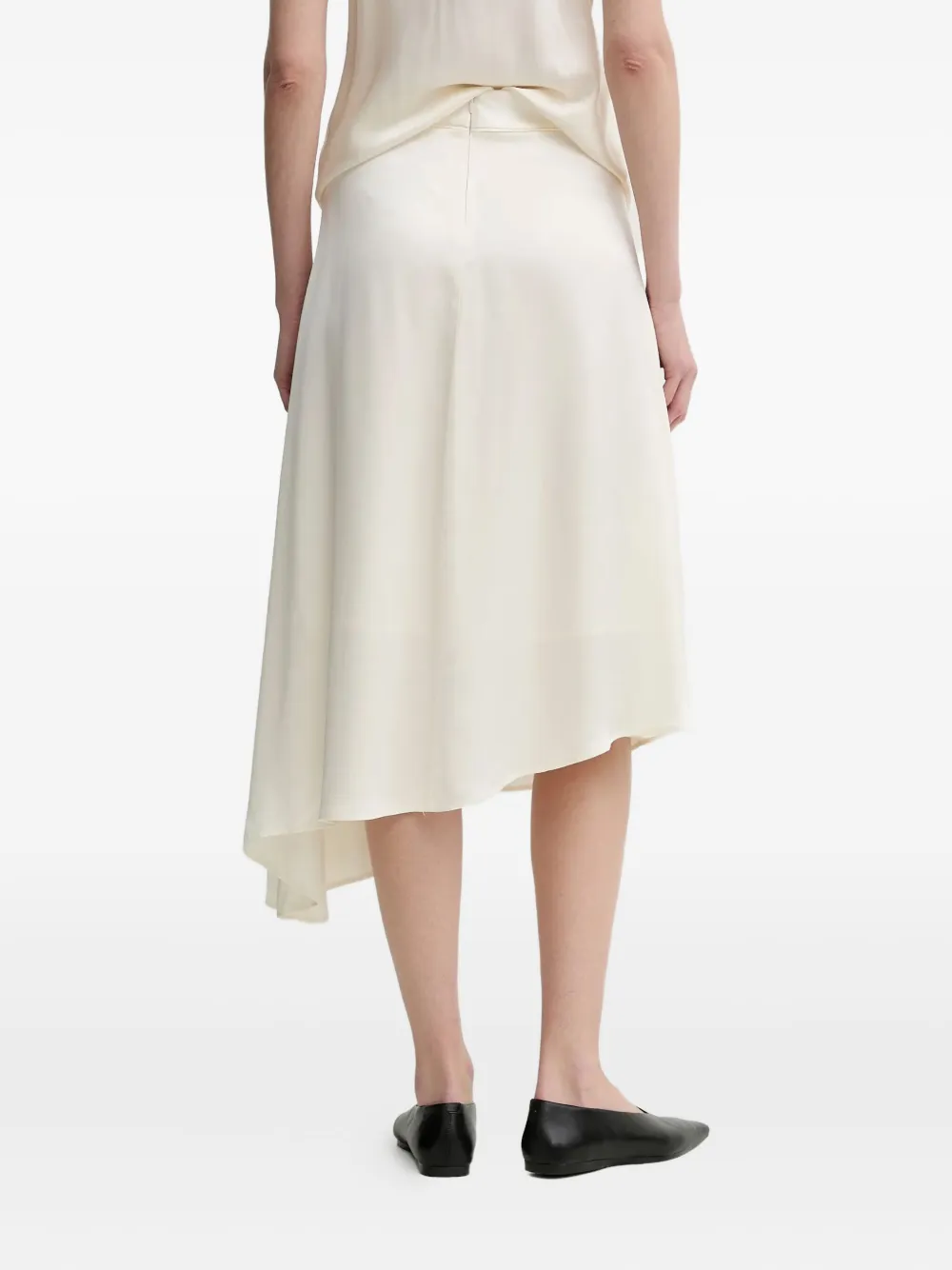Молочного цвета платье средней длины с асимметричным подолом и застежкой-молнией