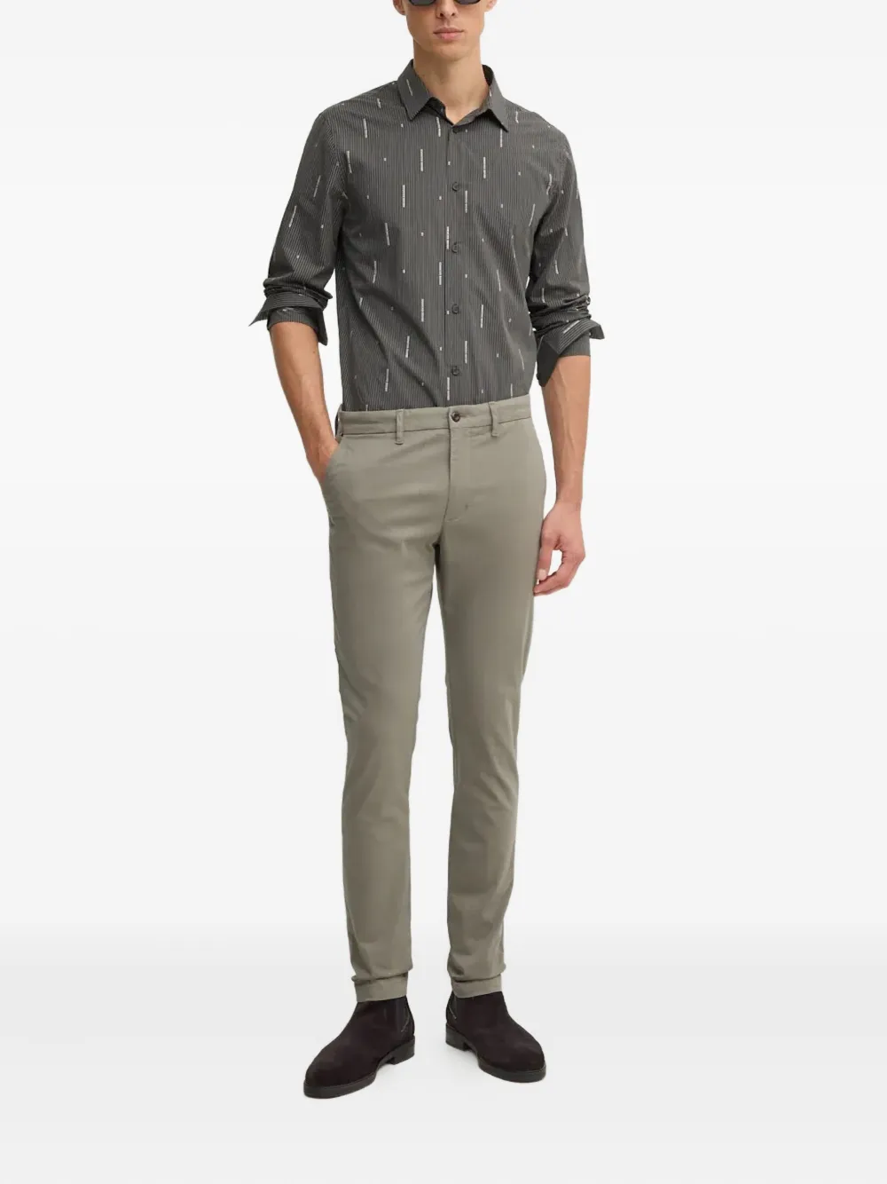 Серый в полоску, застежка на пуговицы, манжеты на пуговицах, классический воротник