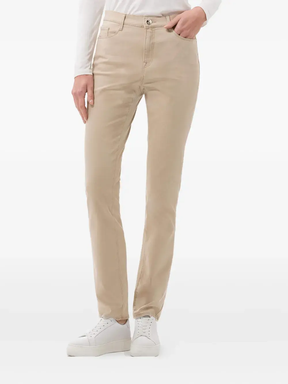 Бежевый, тональная отстрочка, шлевки для пояса, пять карманов, застежка на пуговицу