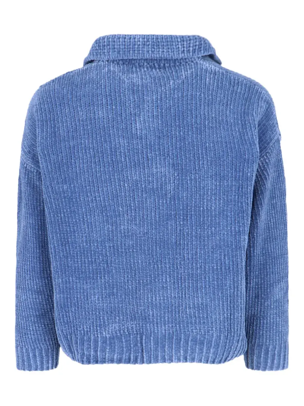 Синий рубчатый вязаный джемпер с воротником, V-образным вырезом и длинными рукавами