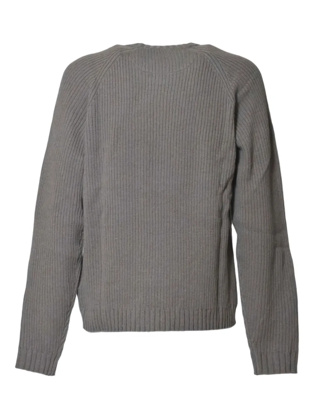 Серый вязаный джемпер в рубчик с круглым вырезом, длинными рукавами и прямым подолом