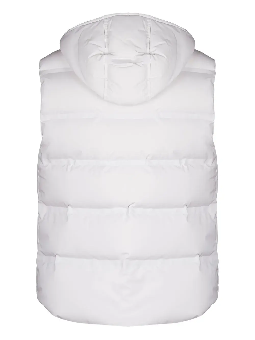 Белый стеганый дизайн, капюшон, застежка на пуговицы спереди, передние карманы, без рукавов
