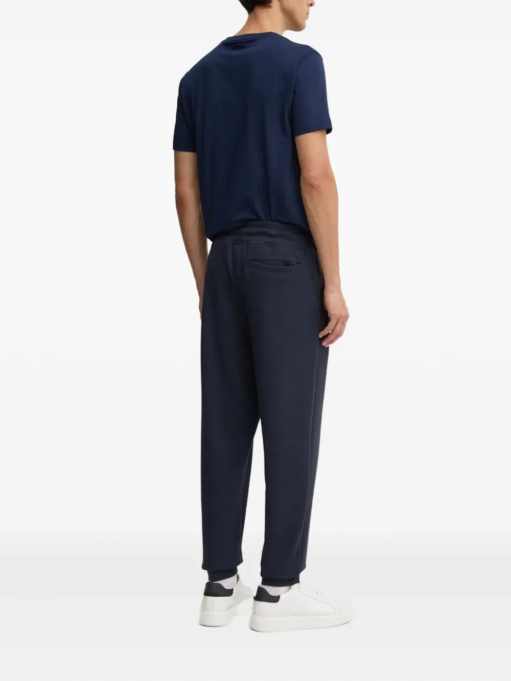 Темно-синий цвет, застежка на шнурке, задний прорезной карман, эластичные манжеты на щиколотках