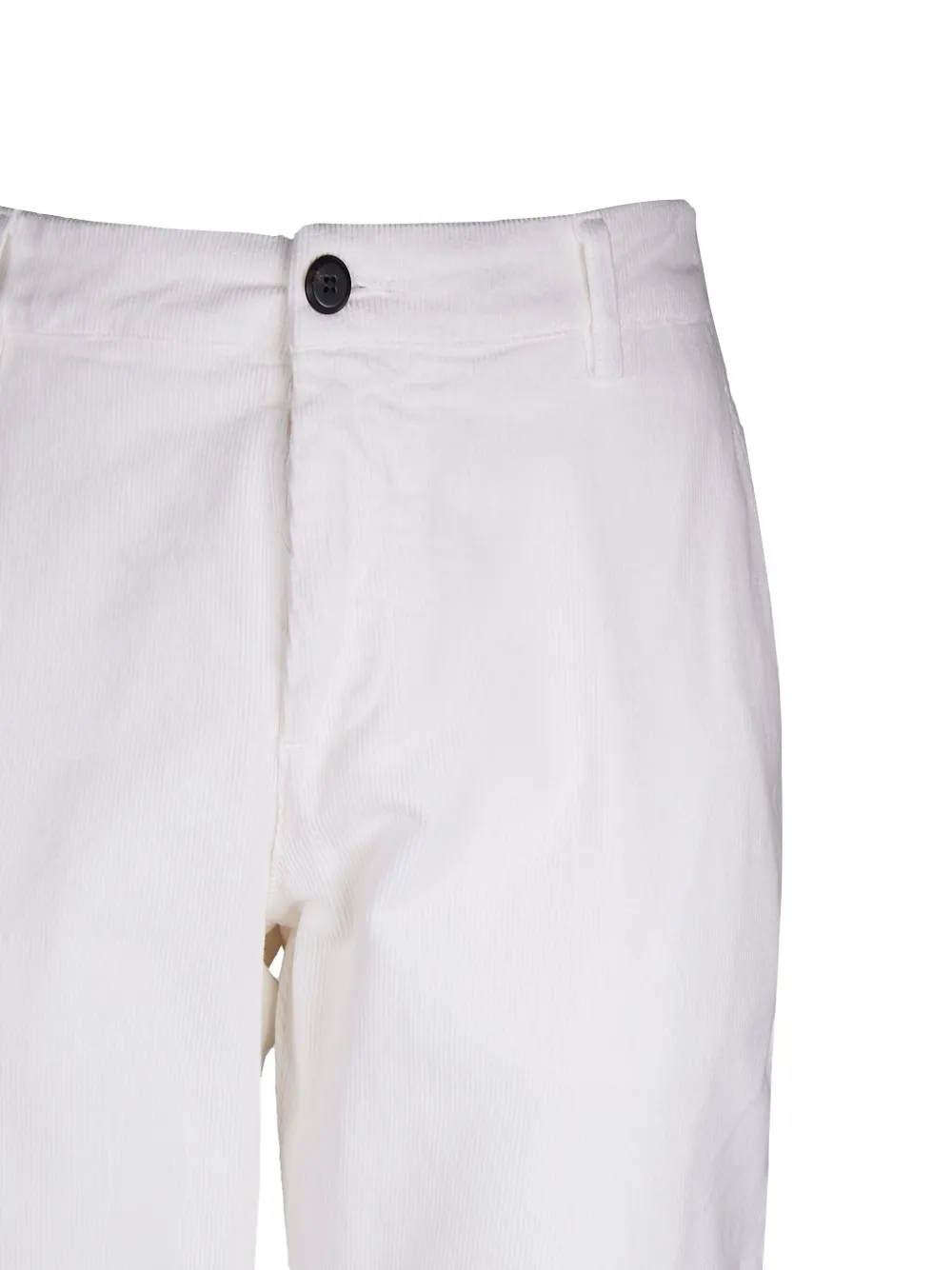 Белый вельвет, текстурированный материал, застежка на пуговицу, шлевки для ремня, пять карманов