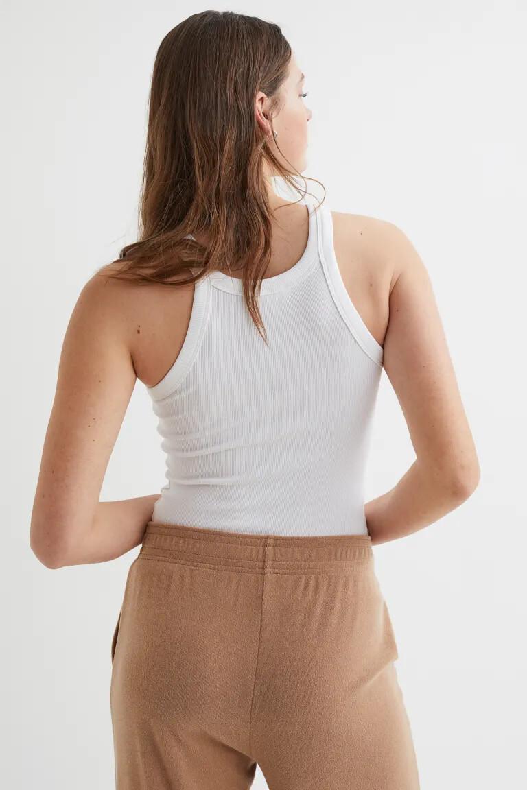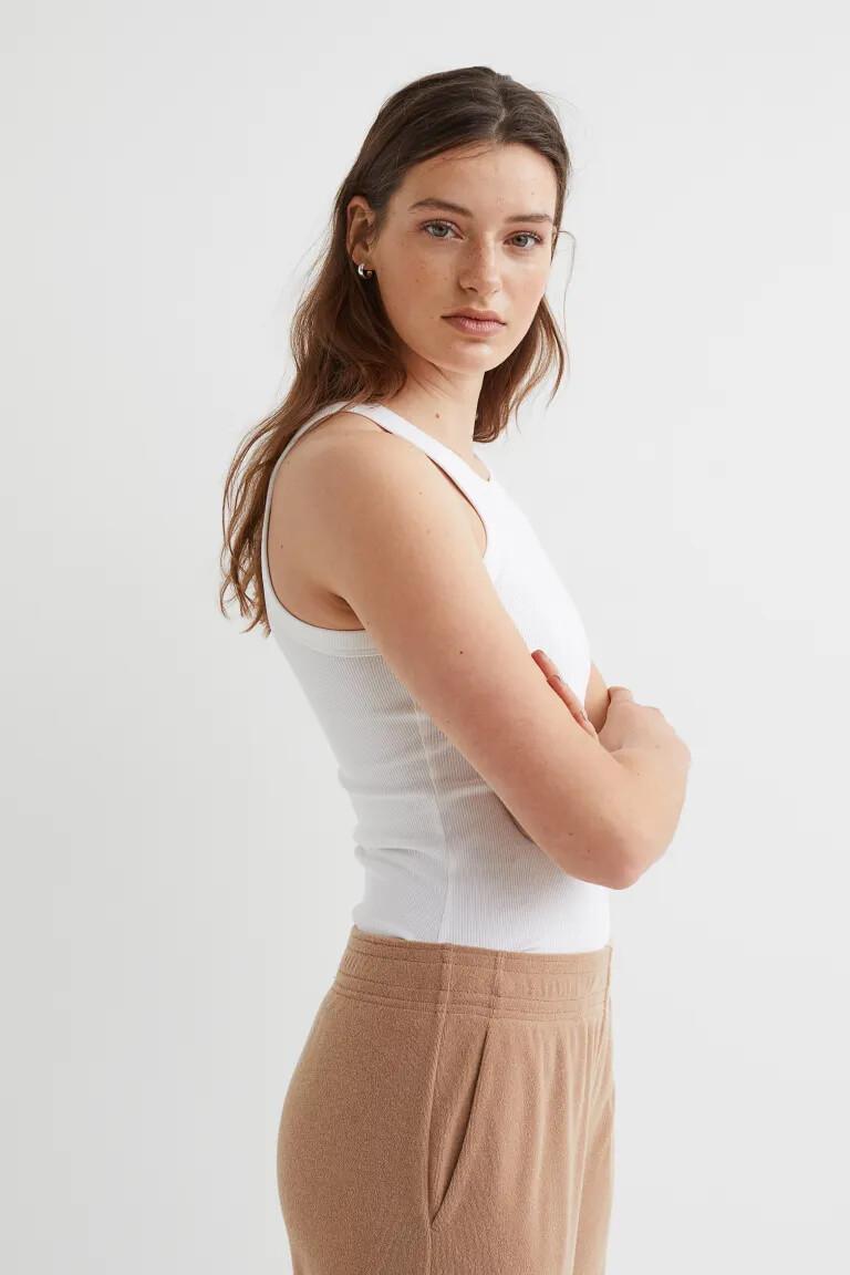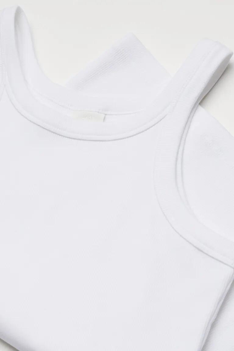 Облегающая майка из хлопкового трикотажа в рубчик с круглым вырезом горловины.