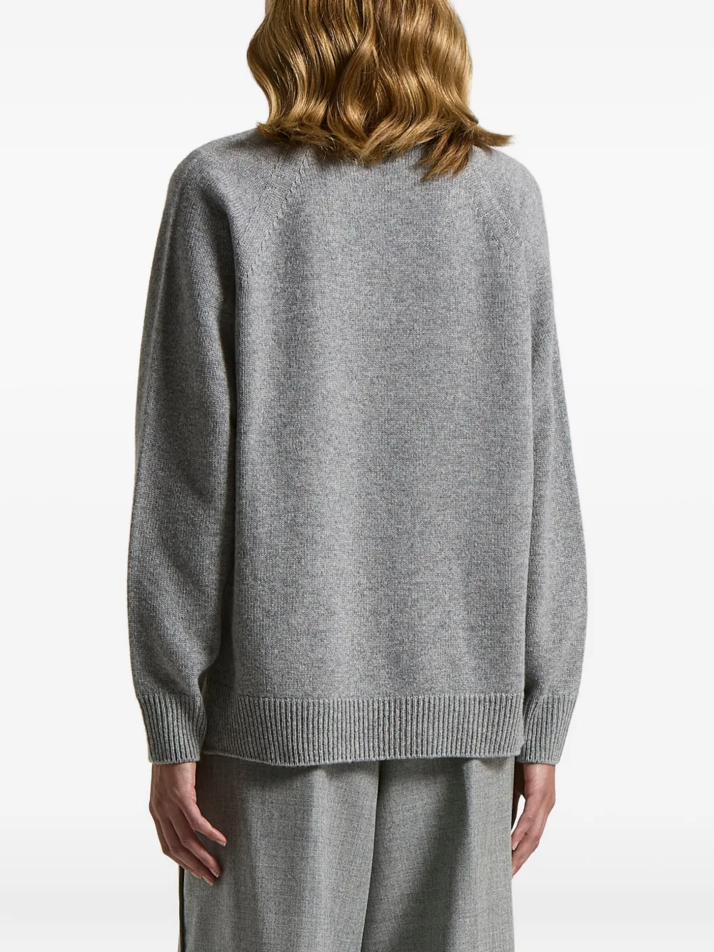 Серый V-образный вырез, ребристый подол, ребристые манжеты, ребристый вырез горловины, длинные рукава