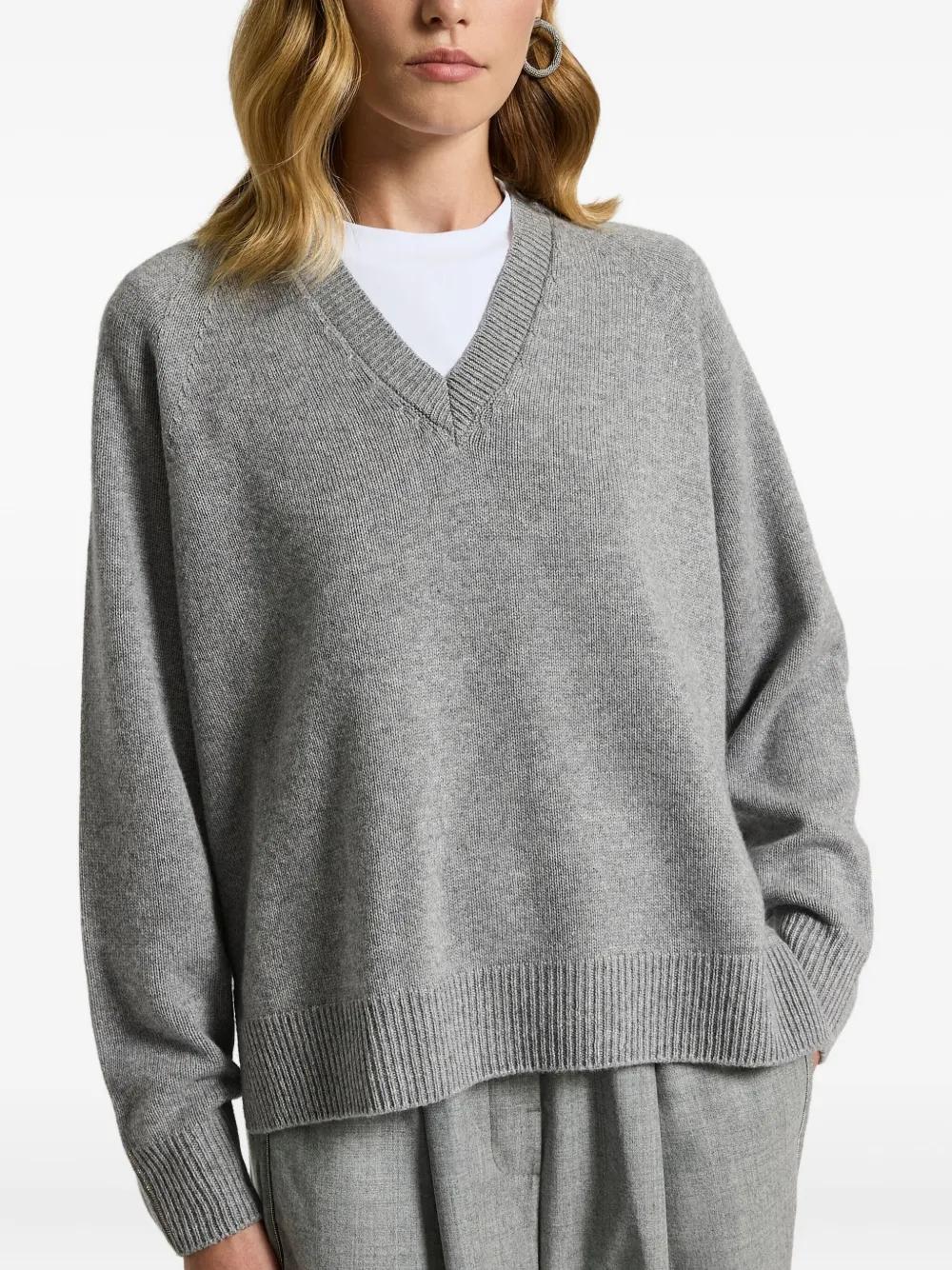 Рифленый свитер с V-образным вырезом Peserico, серый