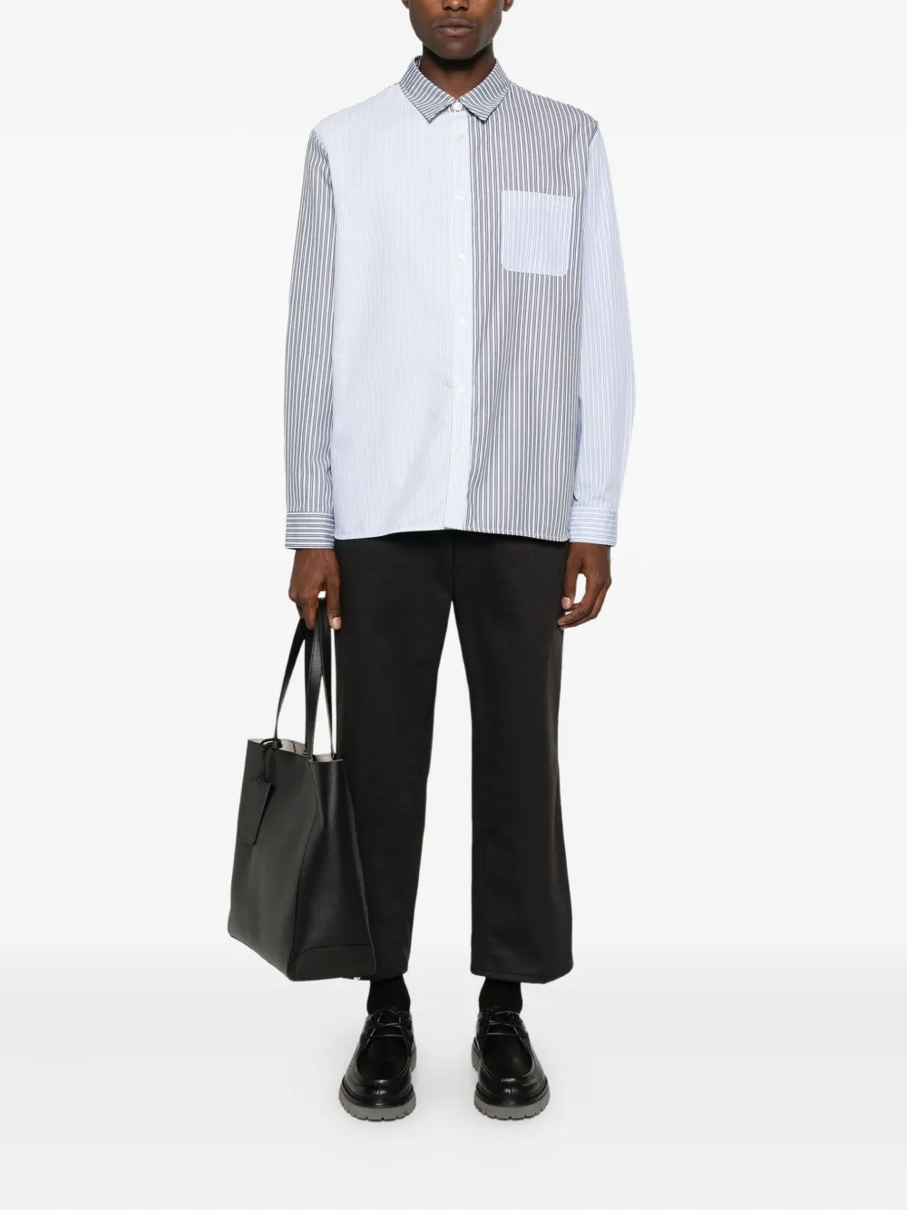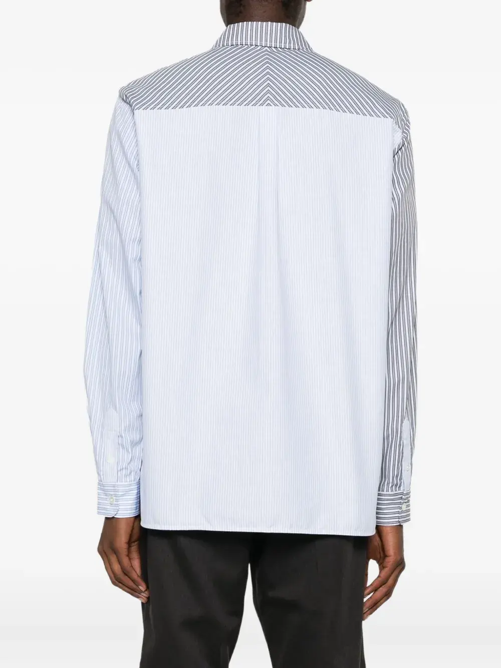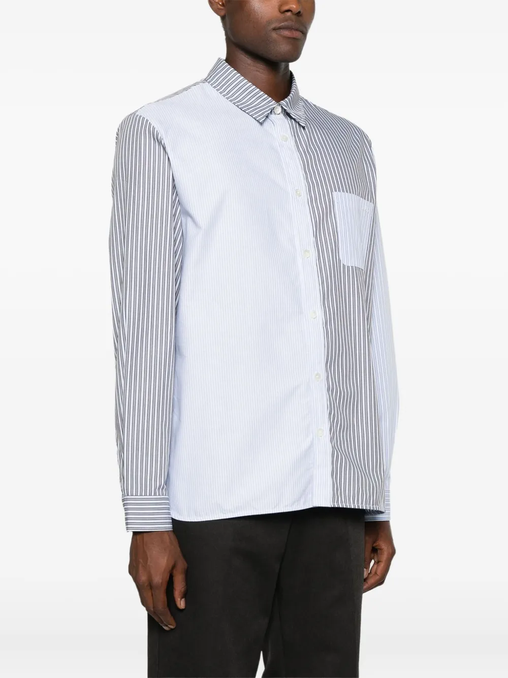 Синий с полосатым узором, комбинированный дизайн, нагрудный карман, застежка на пуговицы, длинные рукава