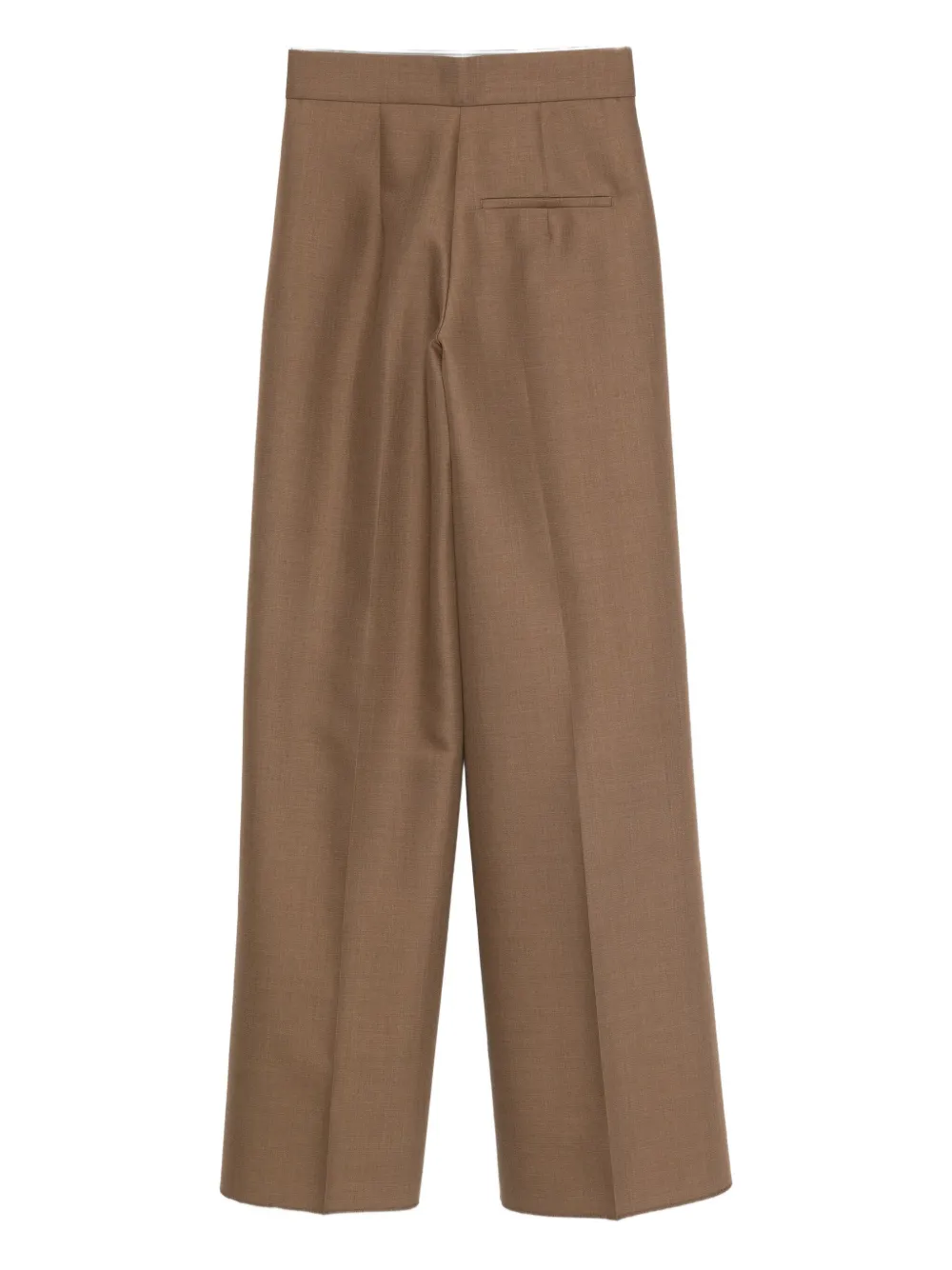 Коричневые брюки в складку, боковые карманы, задний прорезной карман, шлевки для ремня, скрытая застежка