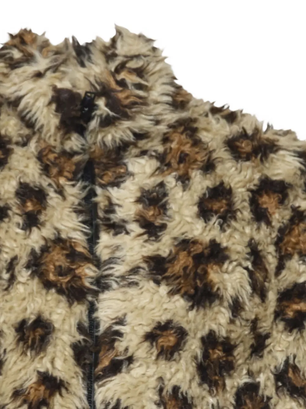 Коричневый леопардовый принт, застежка на молнии, высокий воротник, ребристый нижний край, ребристые манжеты