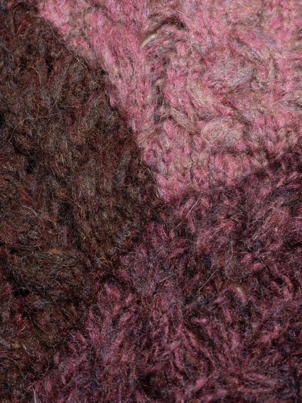 Розовый и фиолетовый дизайн в стиле колорблок, вязаный жгутом, круглый вырез, длинные рукава, ребристые края