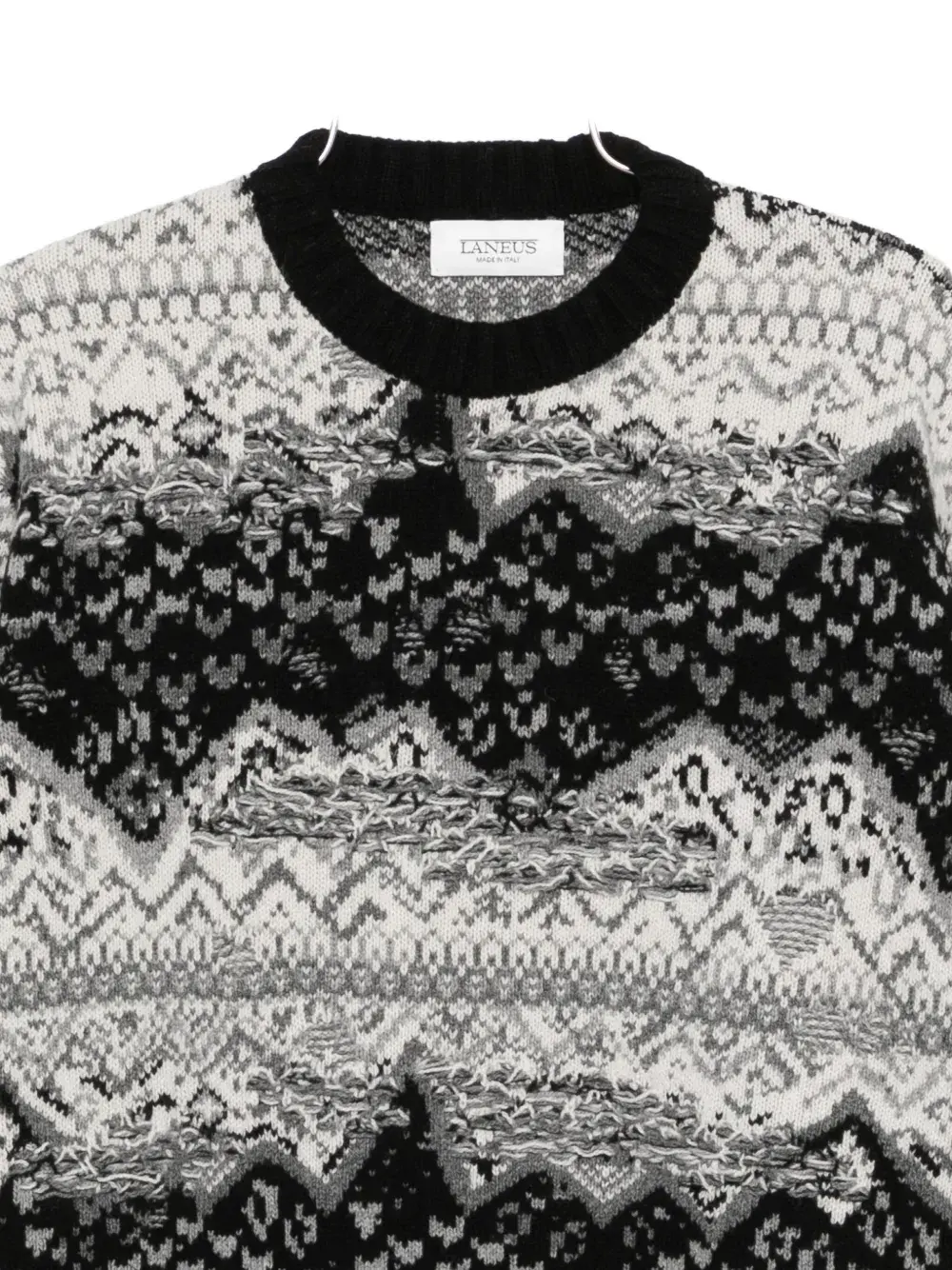 Черный вязаный джемпер с узором, круглым вырезом, застежкой на пуговицы, длинными рукавами и ребристым подолом