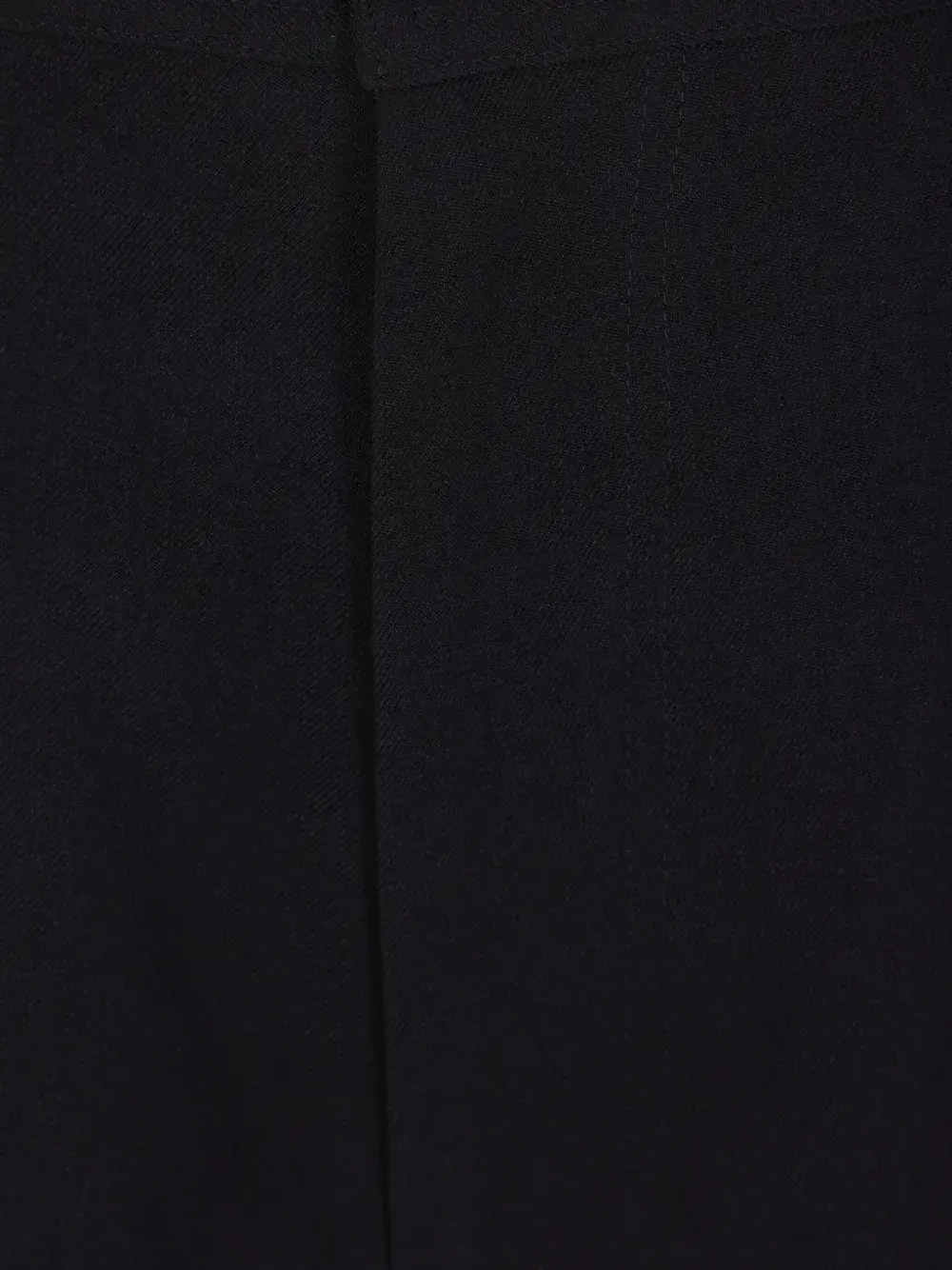 Черные брюки со сборками, застежкой на пуговицы, двумя задними карманами, молнией и фурнитурой золотистого цвета