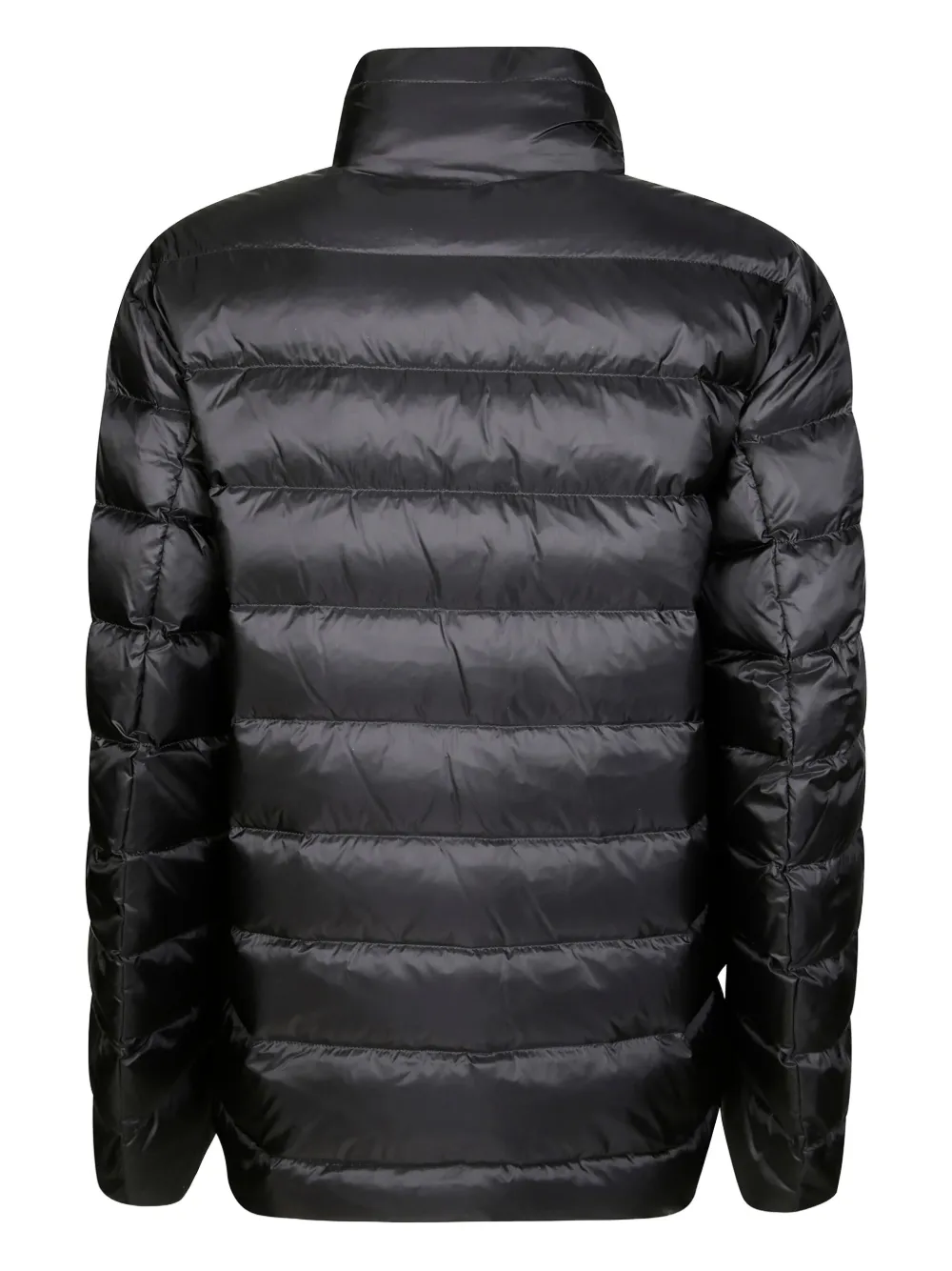 Черная горизонтальная стежка, нашивка с логотипом, застежка-молния в двух направлениях, высокий воротник, капюшон