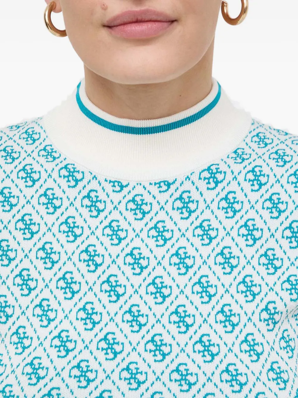 Платье с узором и высоким воротом Guess Usa, белый