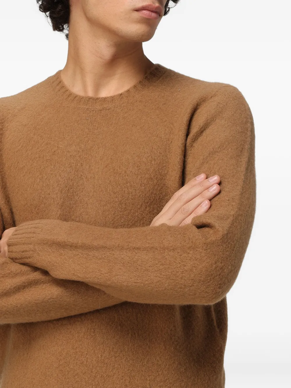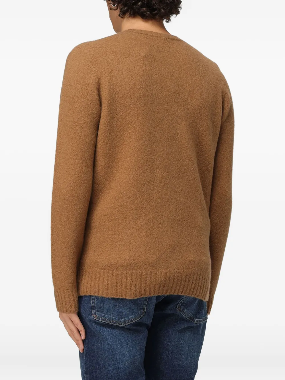 Коричневый джемпер с круглым вырезом, накладным карманом, длинными рукавами, ребристым низом и ребристыми манжетами
