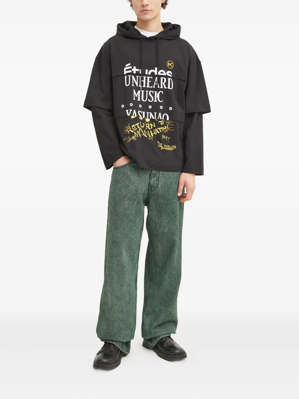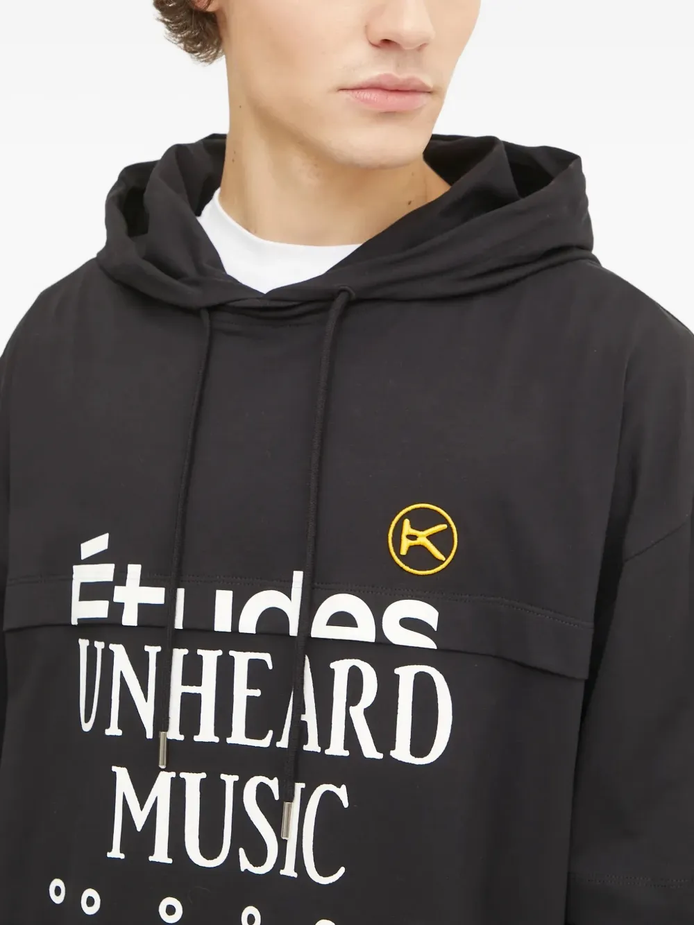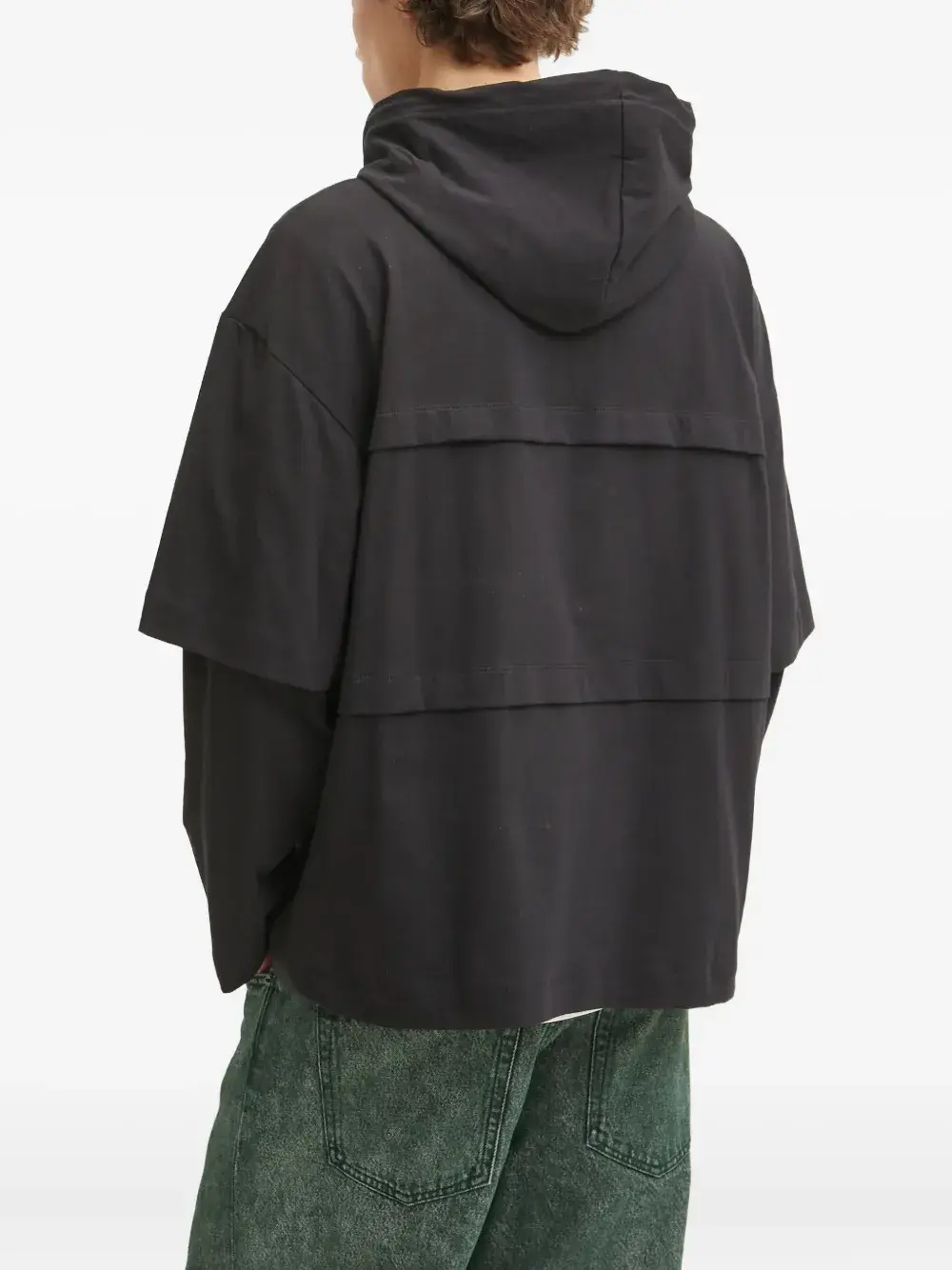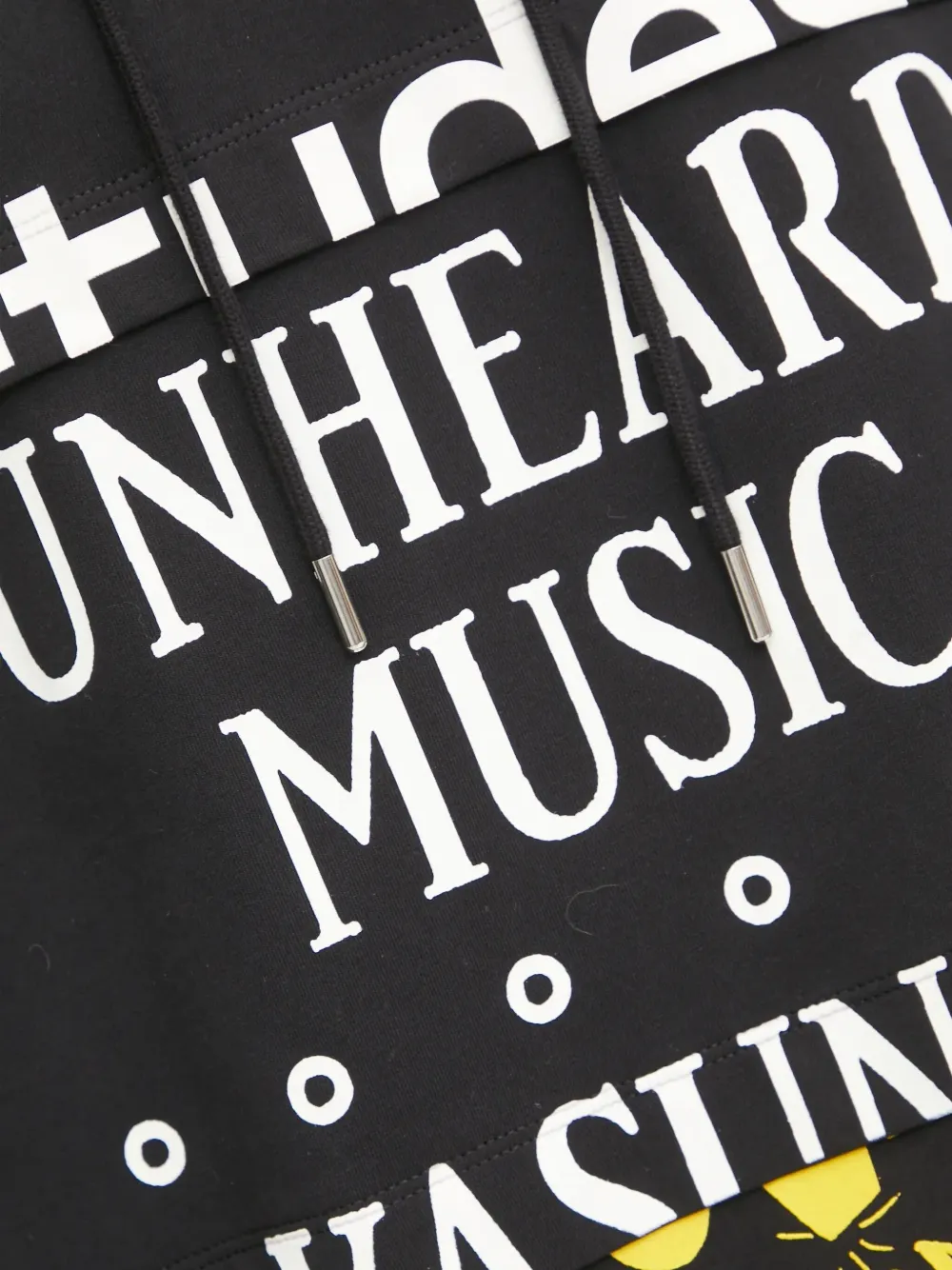 Черная толстовка с графическим принтом, завязками-кулиской, многослойными рукавами и фурнитурой серебристого оттенка