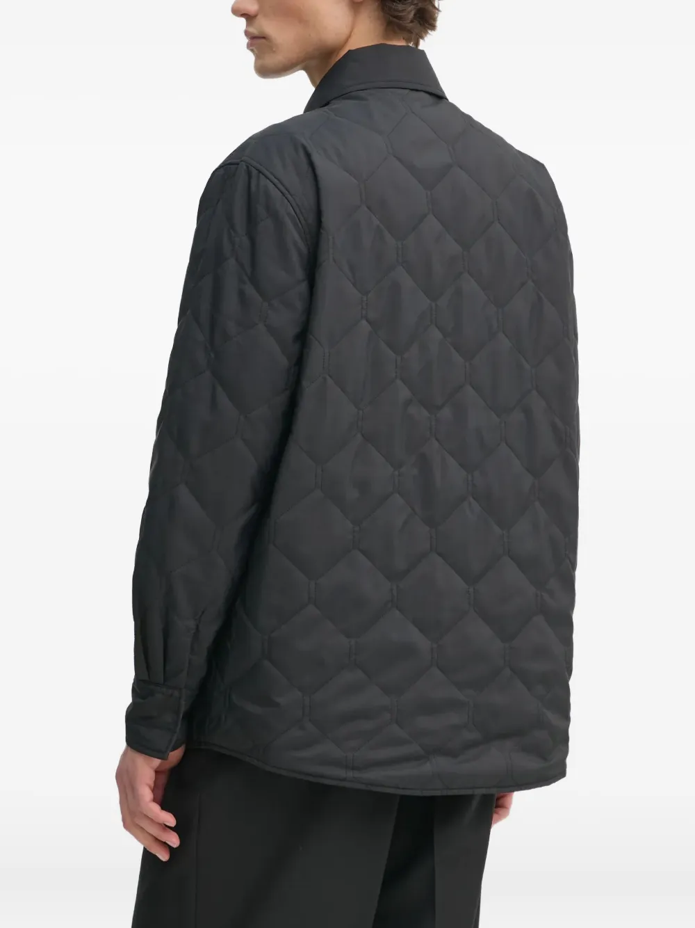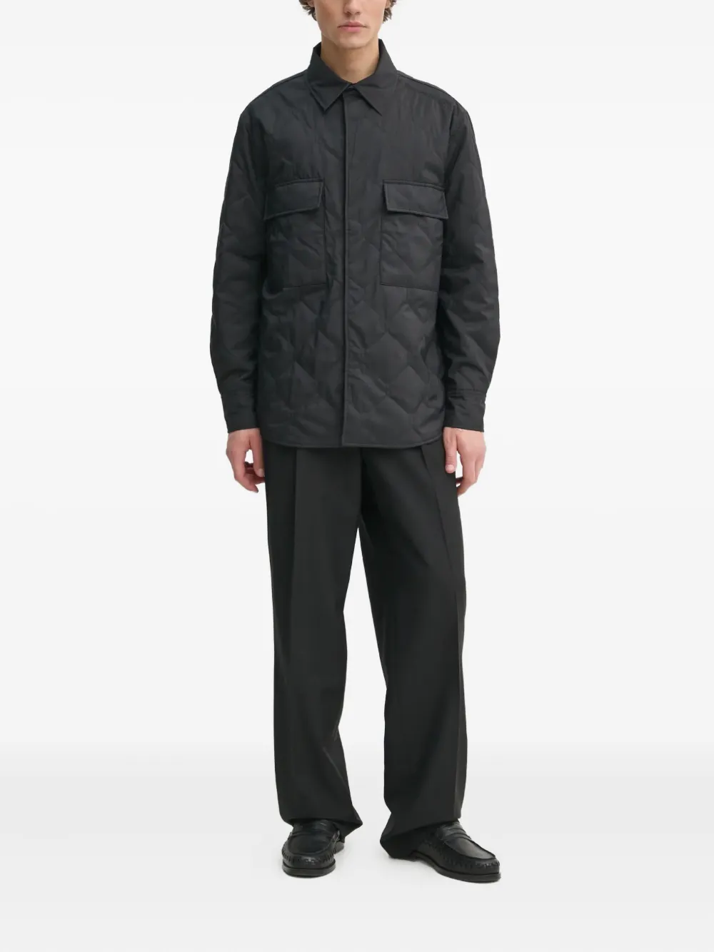 Черный стеганый дизайн, отложной воротник, скрытая застежка спереди, длинные рукава, два нагрудных кармана с клапанами