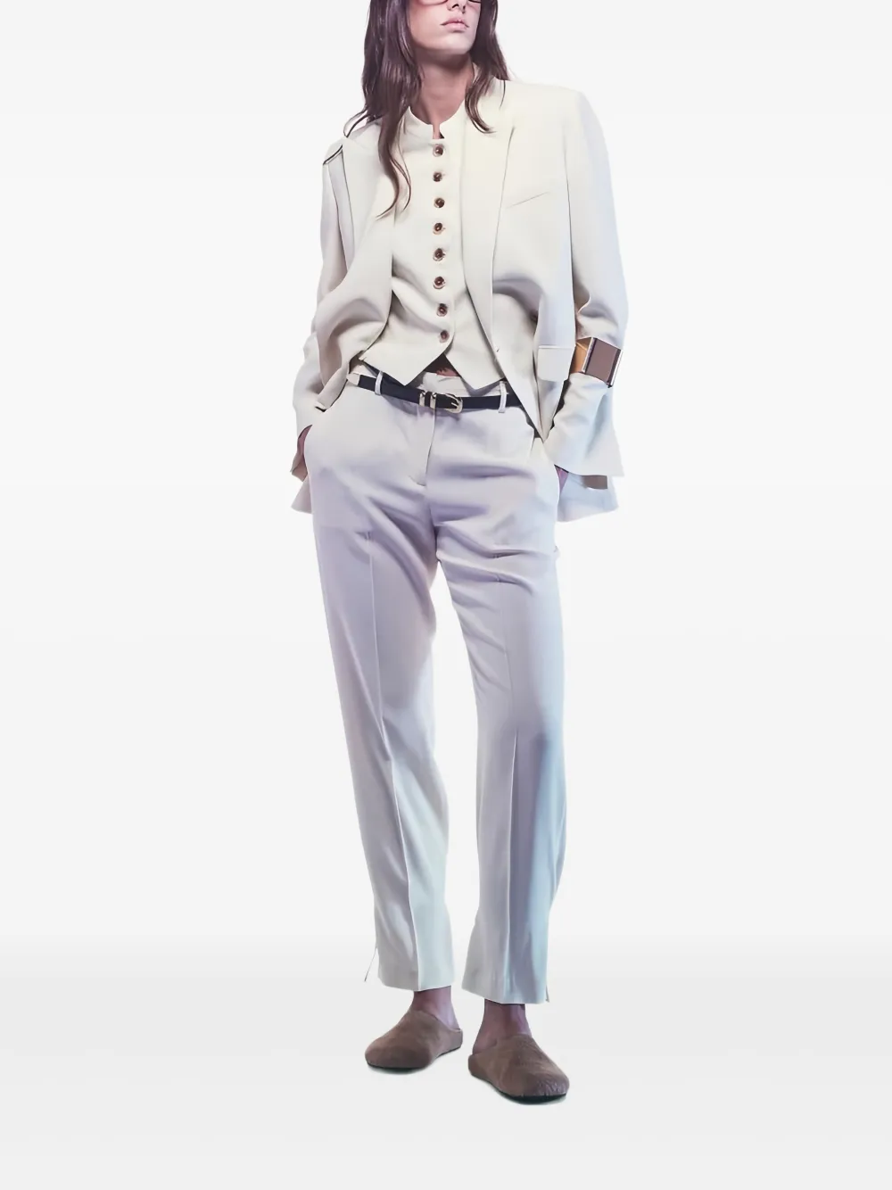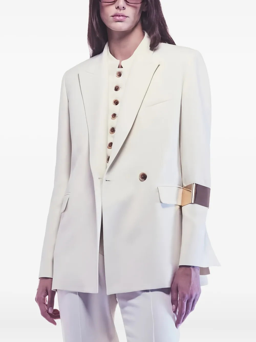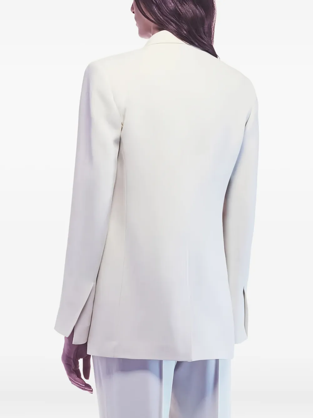 Слоновая кость, отложной воротник, однобортная застежка на одну пуговицу, прорезные карманы с клапанами, длинные рукава