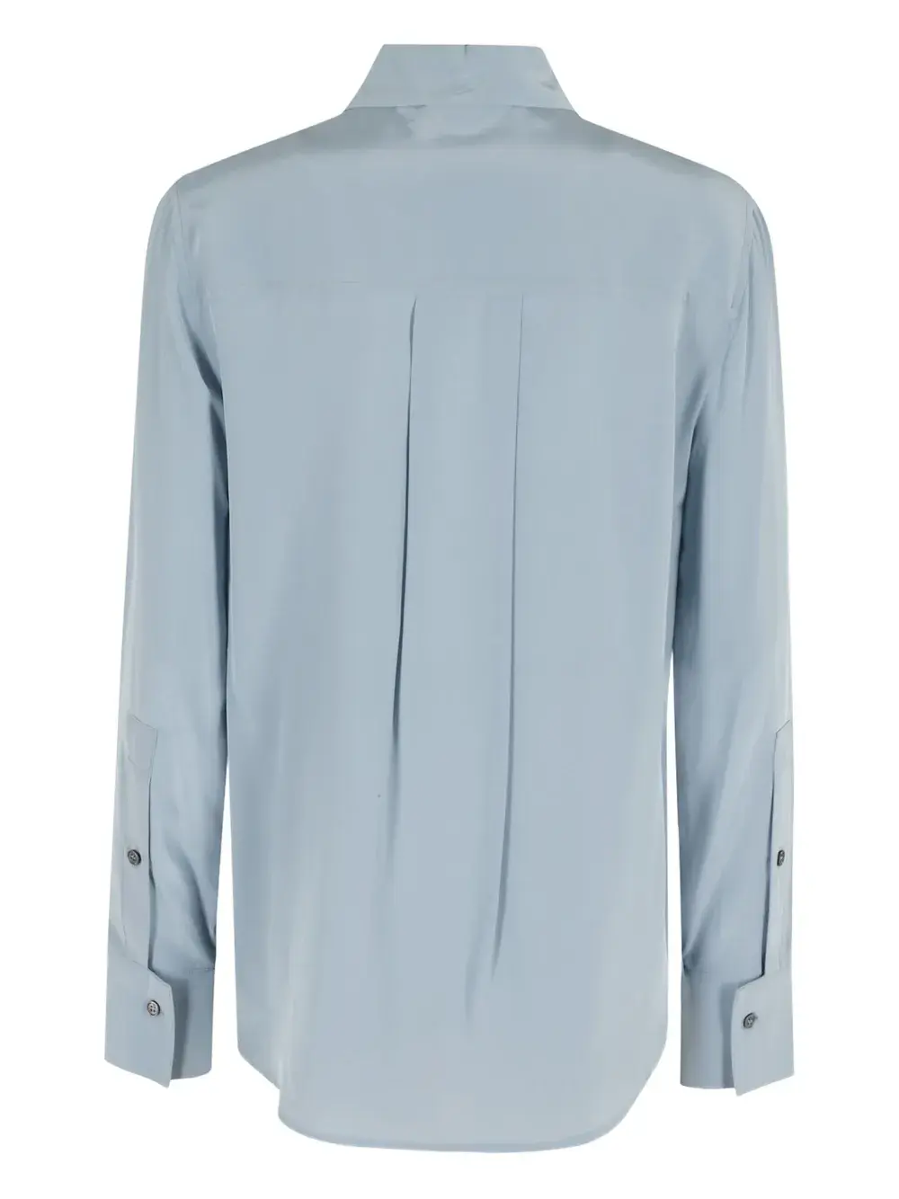 Светло-голубой, застегивается на пуговицы, длинные рукава, манжеты на пуговицах, классический воротник, складка на спине
