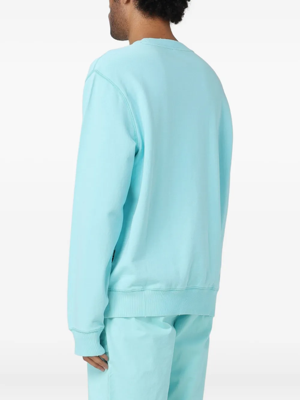 Светло-голубой свитшот с тональным логотипом, круглым вырезом, длинными рукавами, ребристым низом и ребристыми манжетами