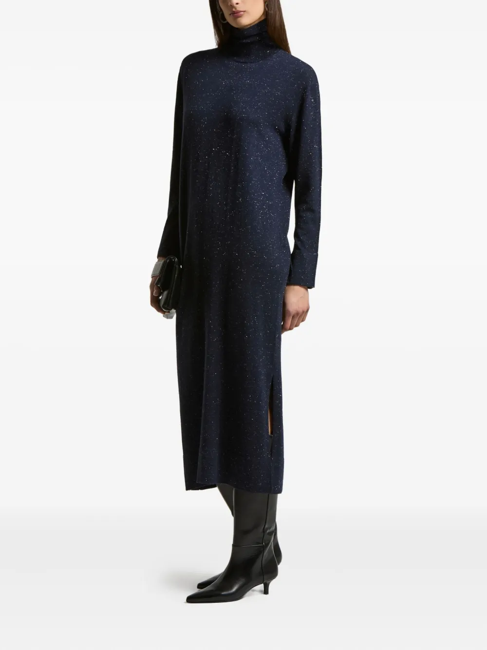 Платье миди с высоким воротником и разрезом Peserico, синий