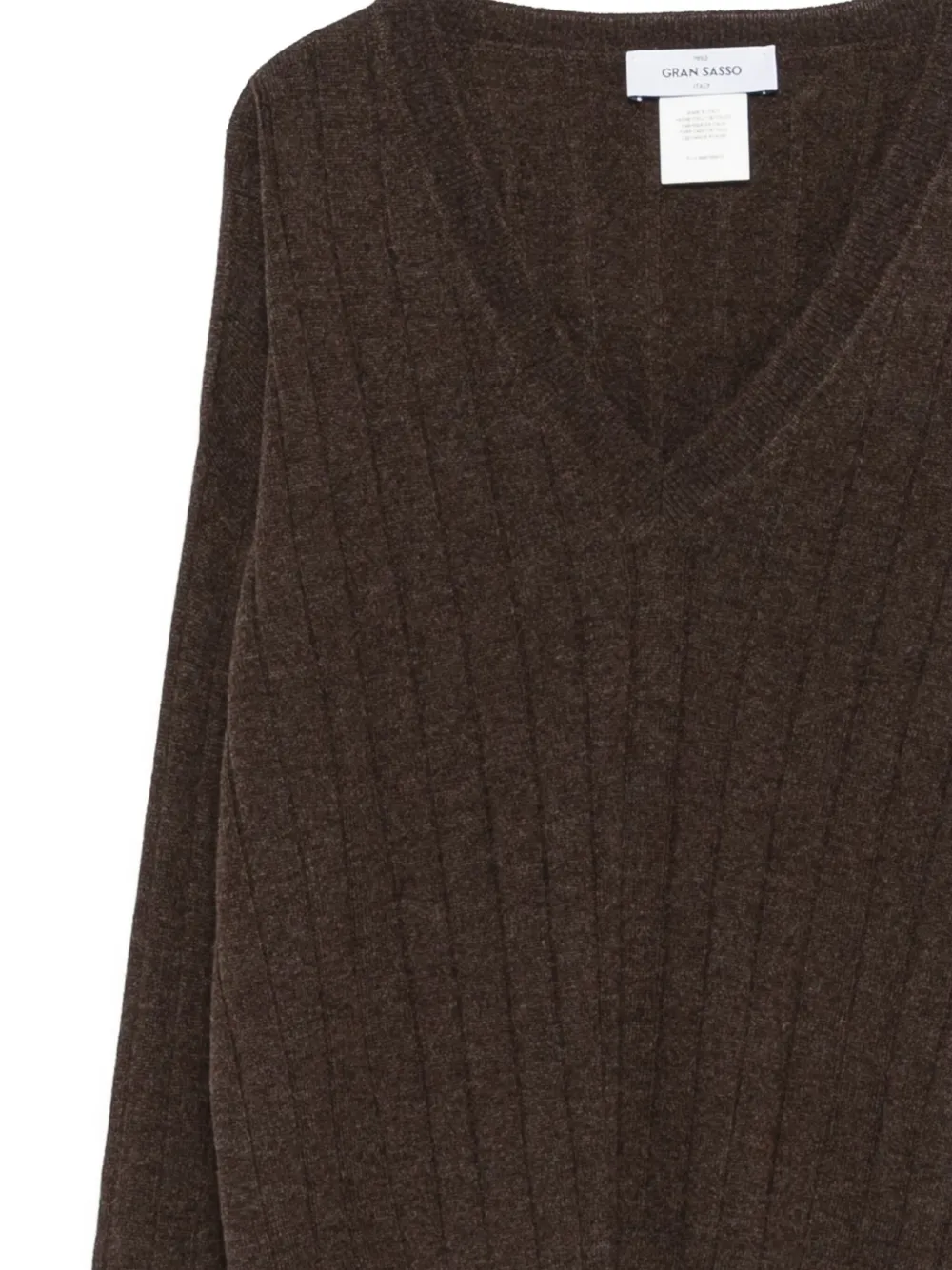 Свитер с V-образным вырезом Gran Sasso, коричневый
