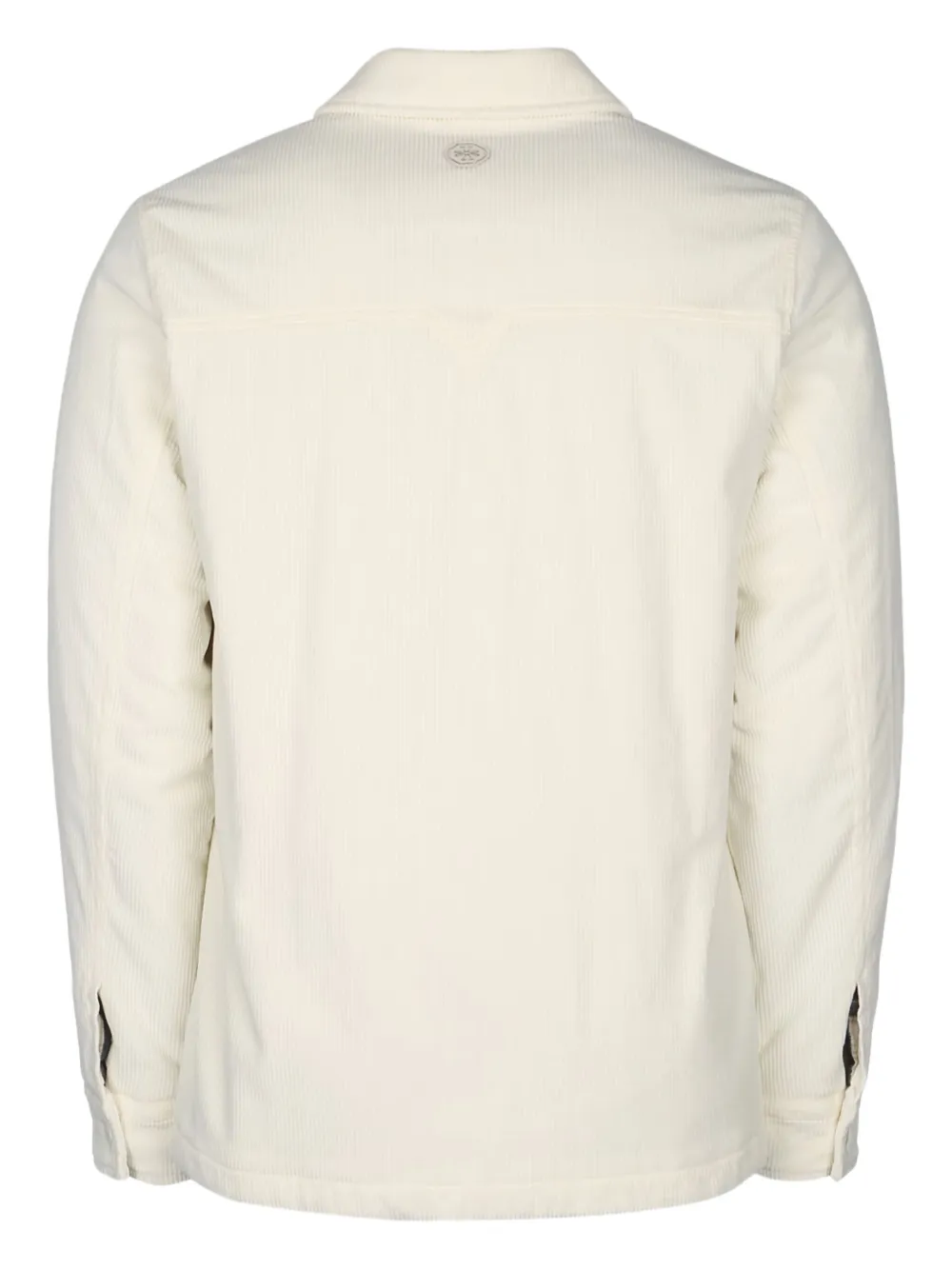 Кремово-белый вельвет, текстурированный, застежка на пуговицы, нагрудные карманы с клапанами, длинные рукава, манжеты на пуговицах