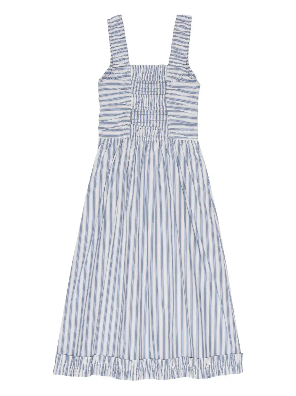 Полосатое платье со сборками Ganni, белый 20 021₽
