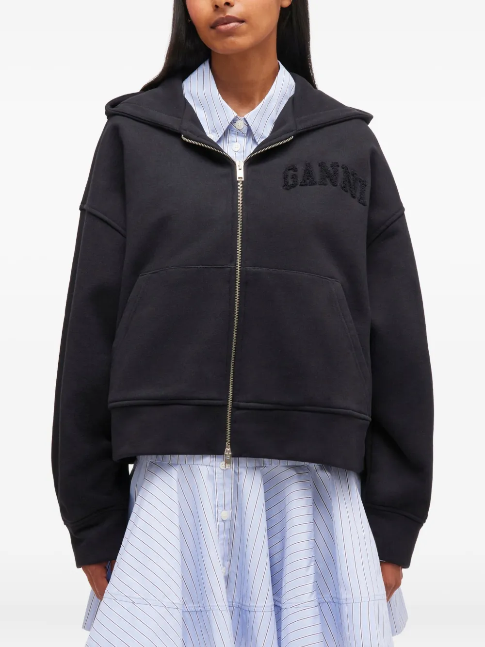Худи на молнии Ganni, черный