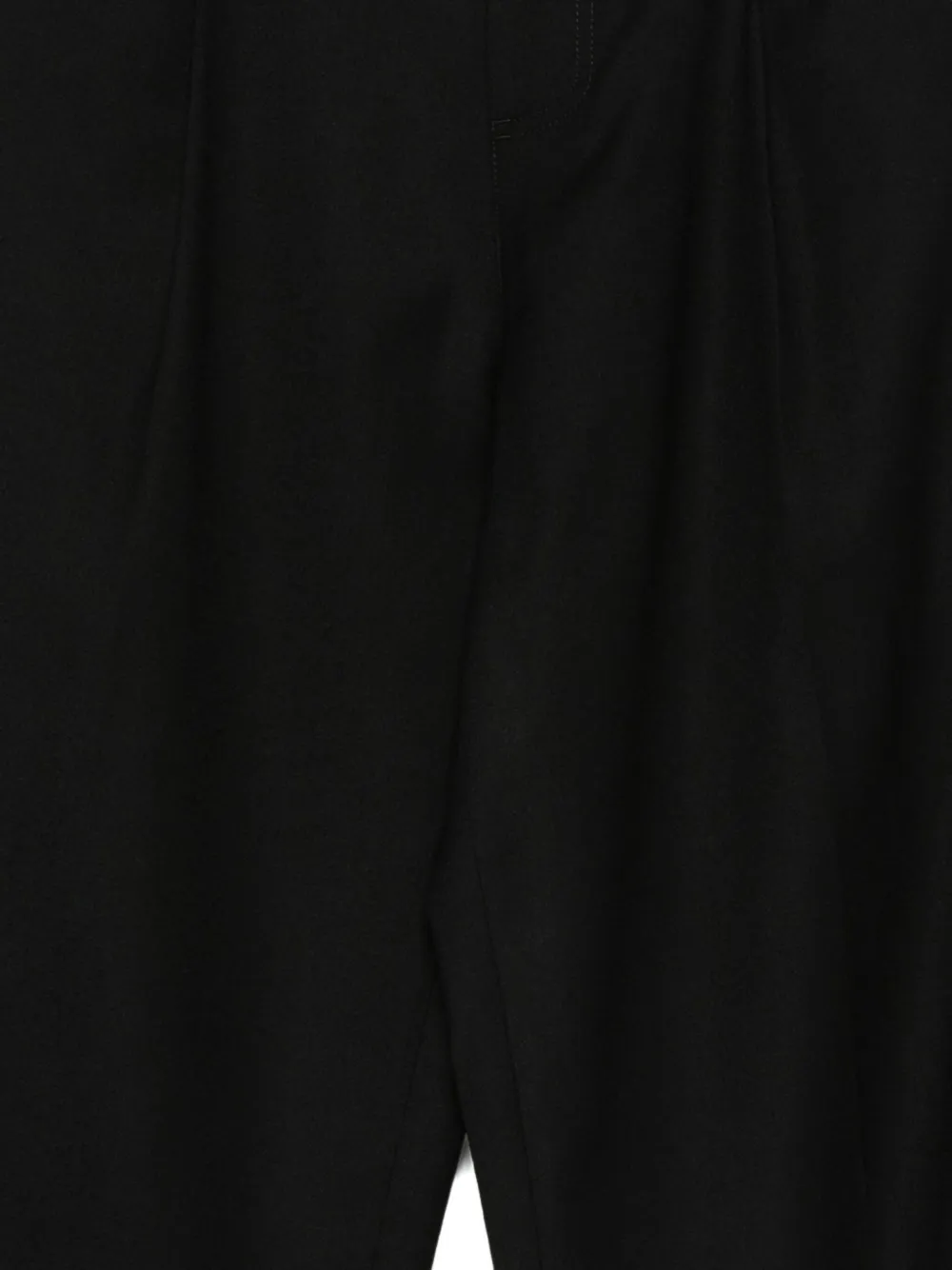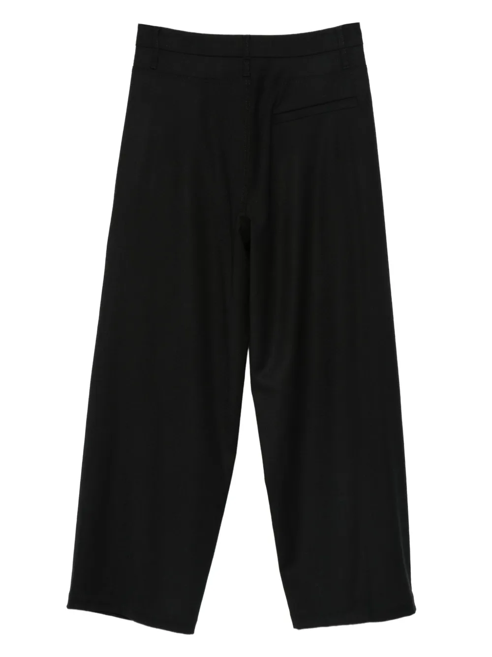 Черные брюки с защипами спереди, шлевками для ремня, боковыми карманами в швах, прорезным задним карманом и скрытой застежкой спереди
