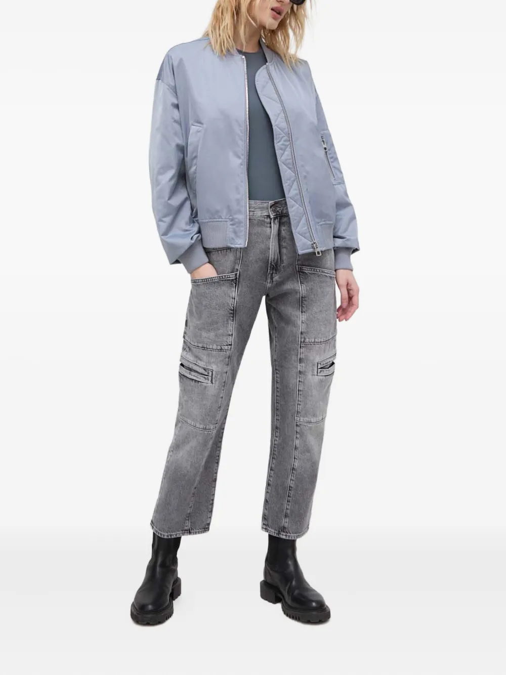 Серые шлевки, задние накладные карманы