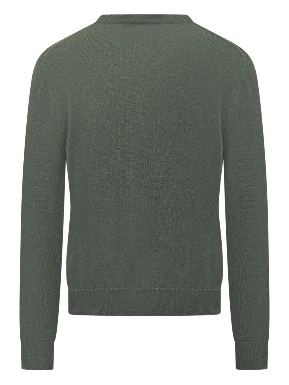 Зеленый свитер с круглым вырезом и длинными рукавами