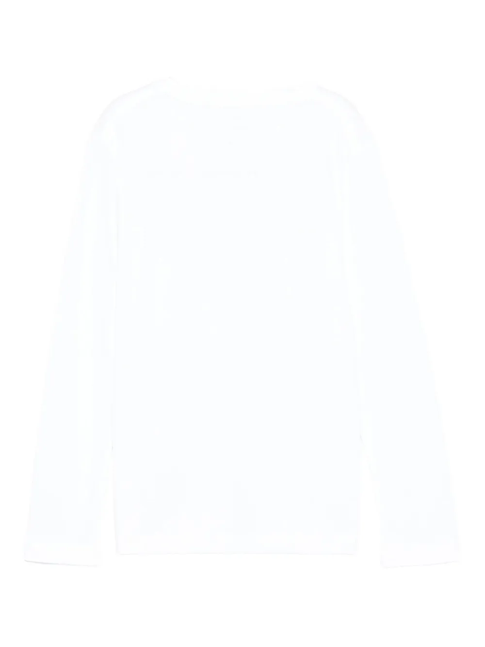 Белый лонгслив с круглым вырезом и принтом-логотипом на груди